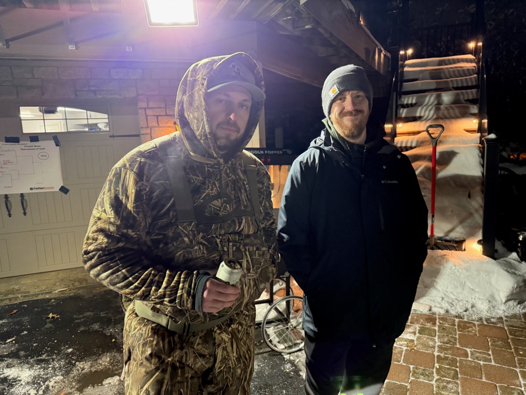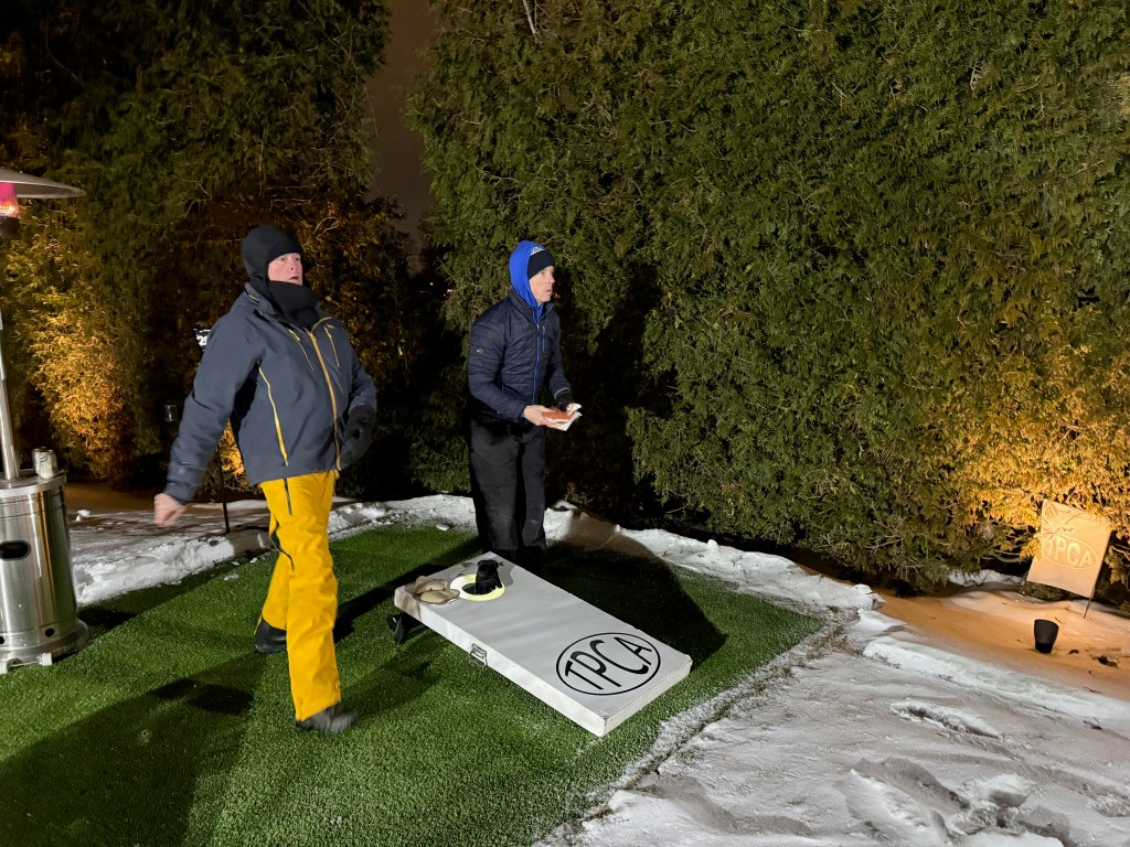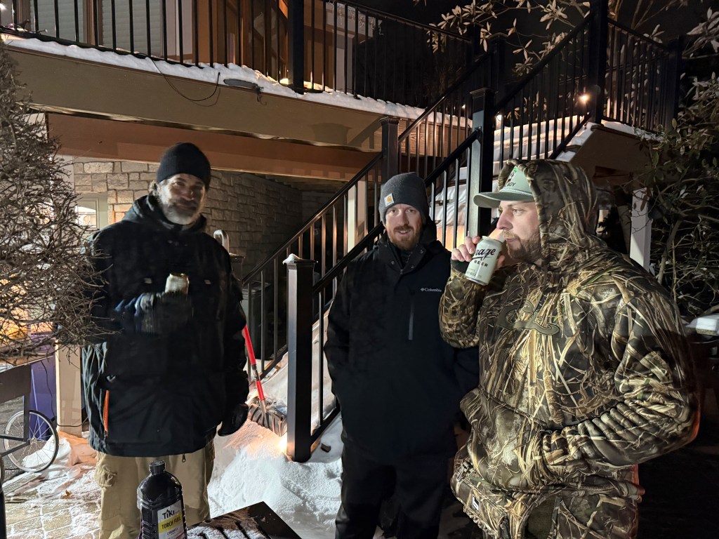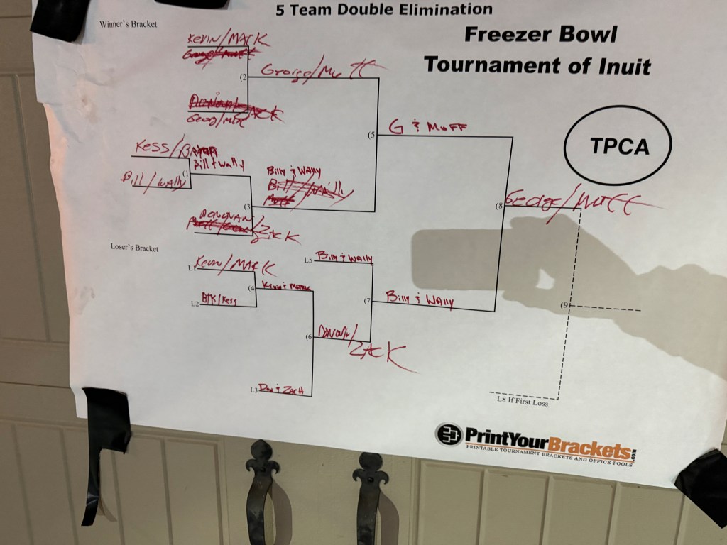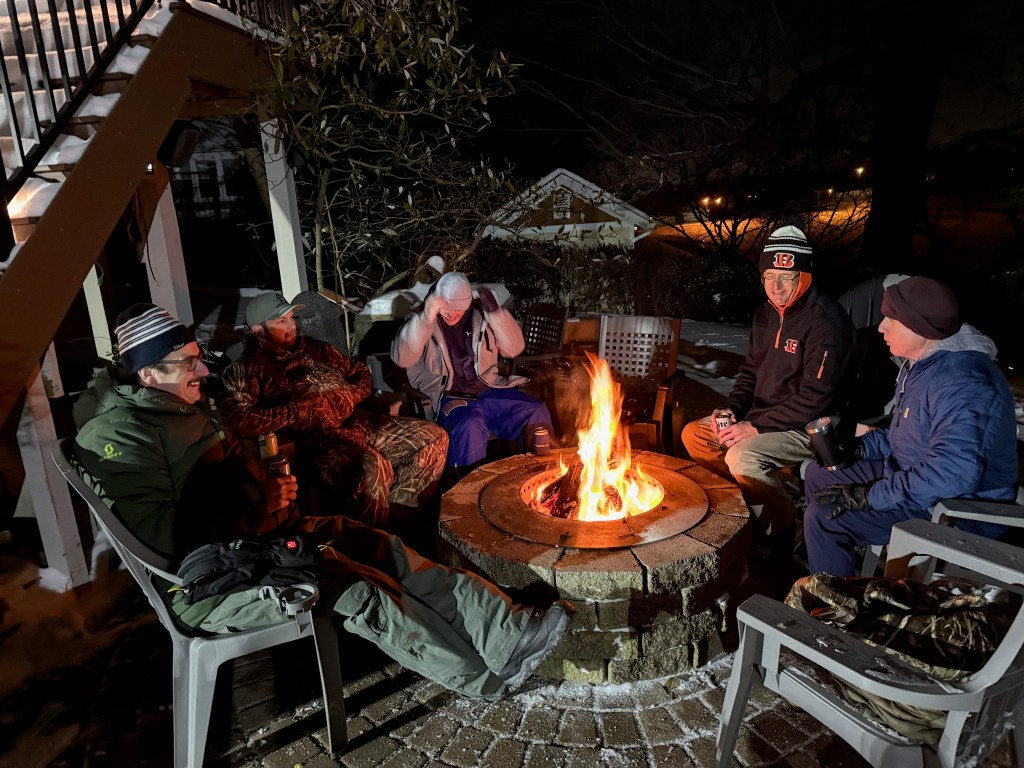 12/18/2025 – We had our annual Christmas Beer Exchange and Cornhole Spectacular tournament at John’s building in Wilder. We had lots of appetizers and beer! There were nine teams in our usual blind draw, double-elimination tournament. The dream team of Muff and George won, but it wasn’t easy; a couple of the games were way too close. Muff’s new haircut must have helped him play so well. It was nice to see the occasional players there. The prizes were General Thomas Bourbon with a special Christmas message. Fun times for all! Merry Christmas.