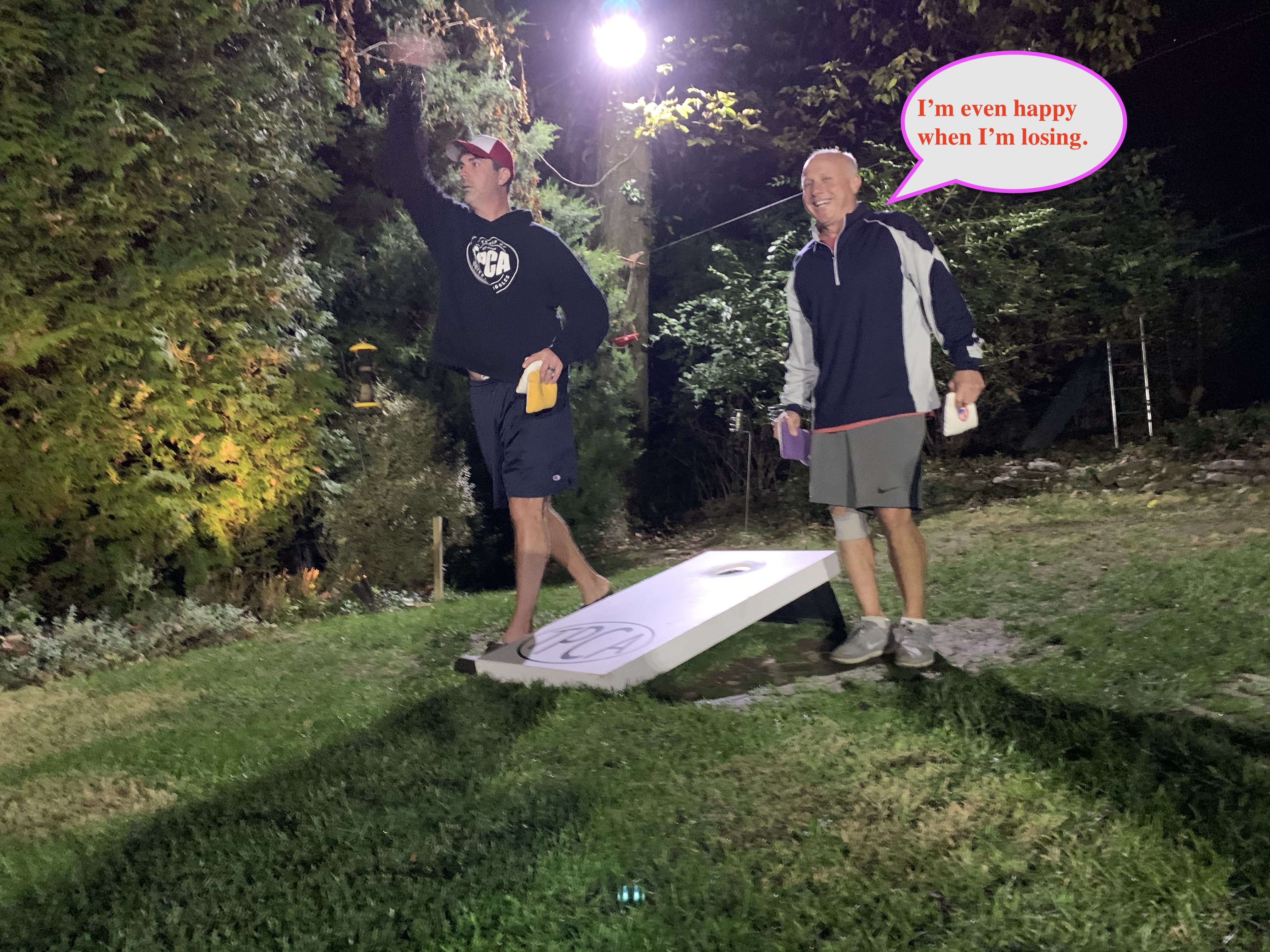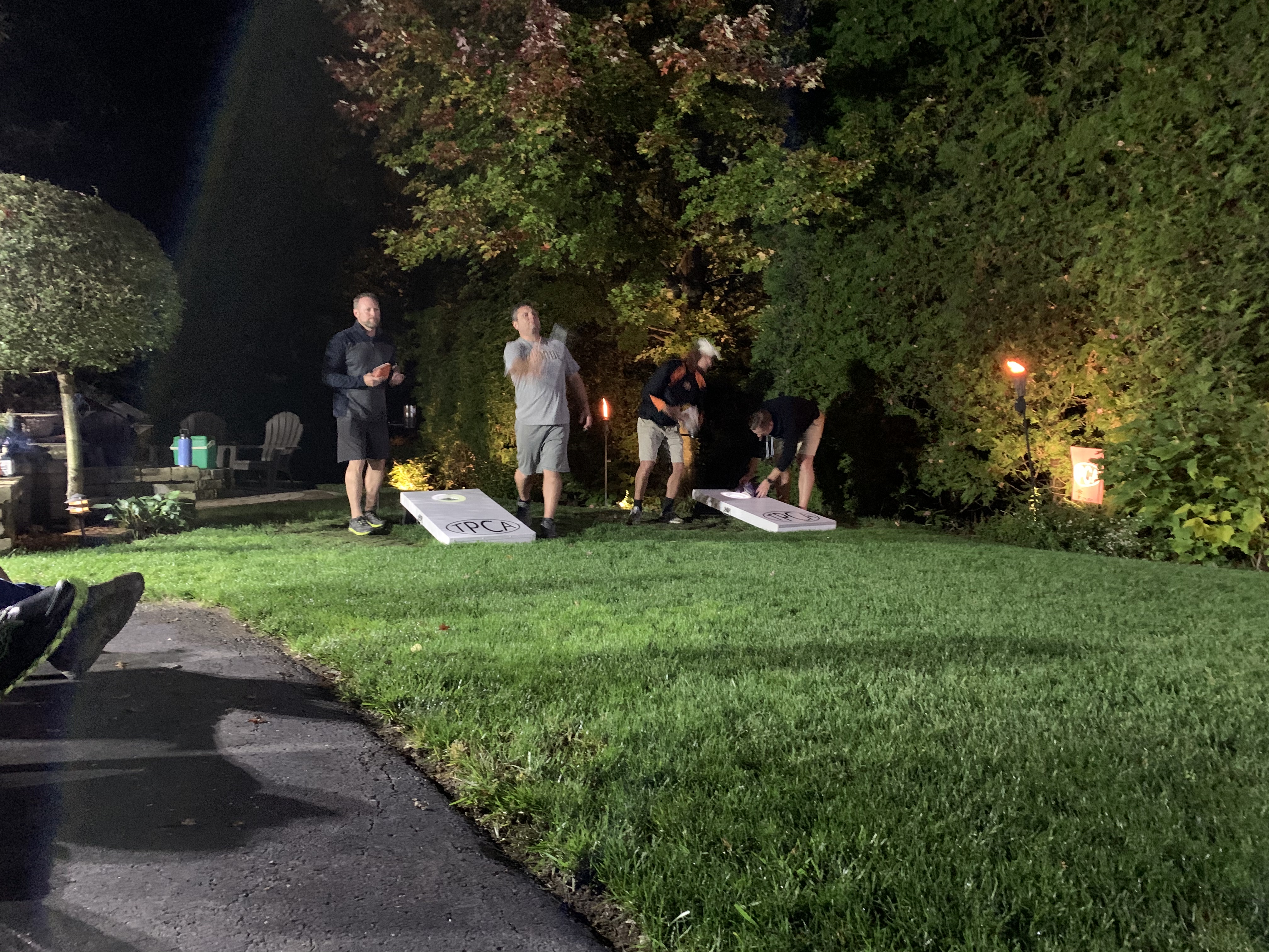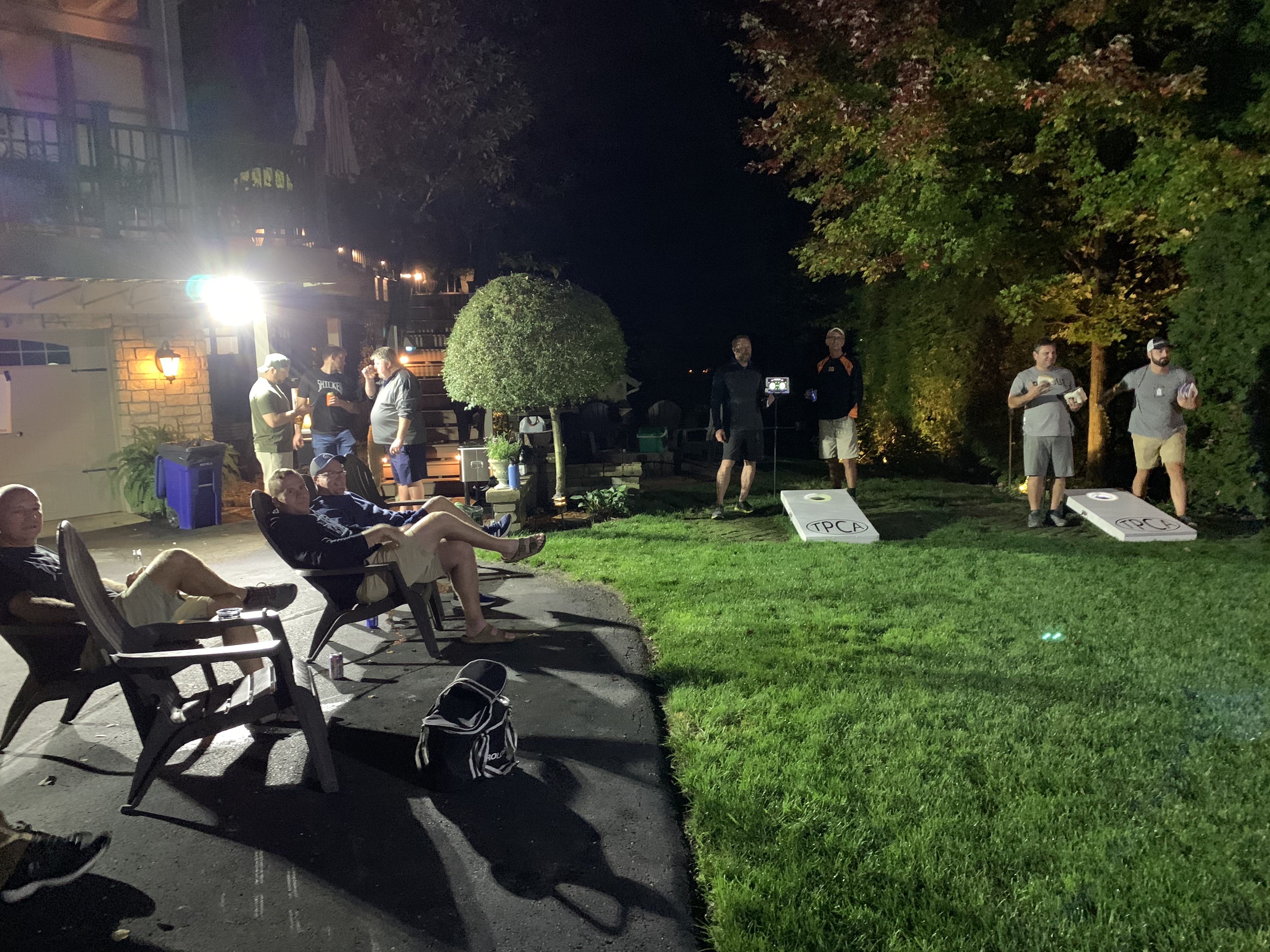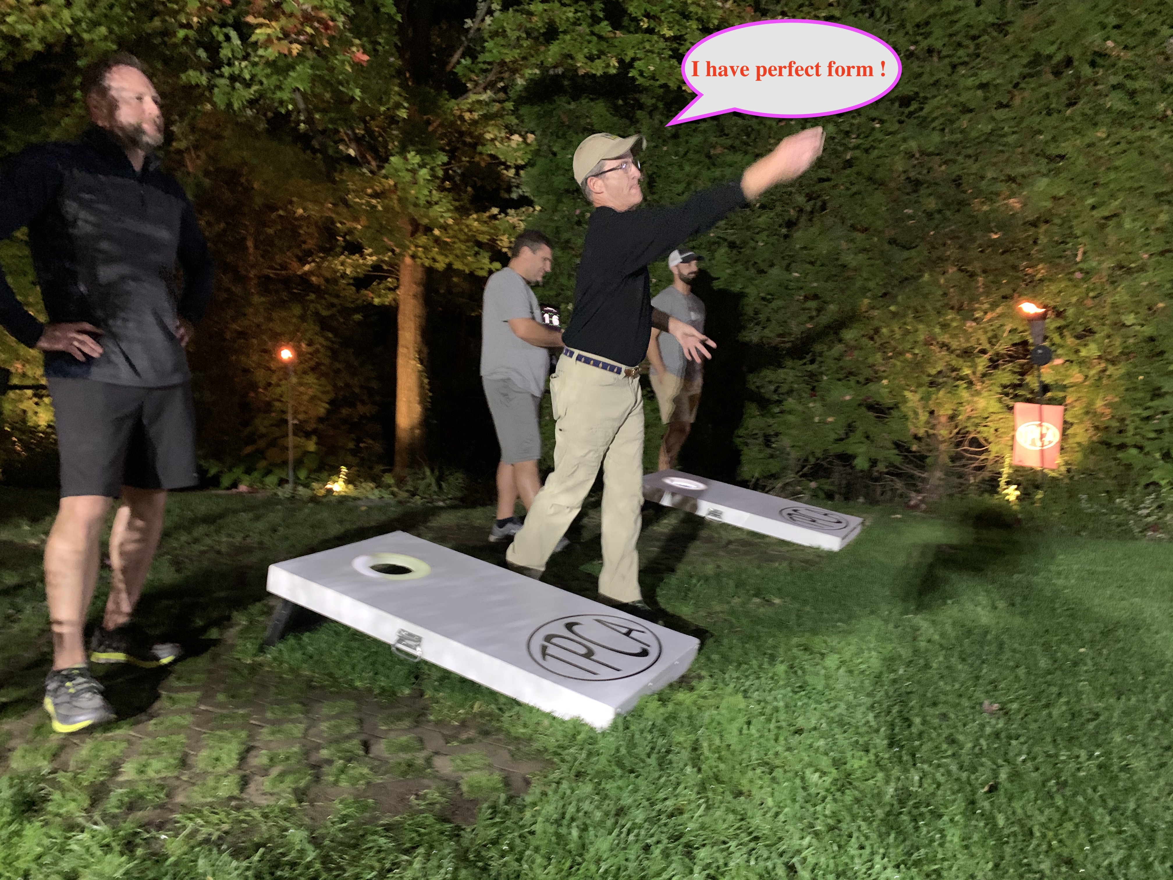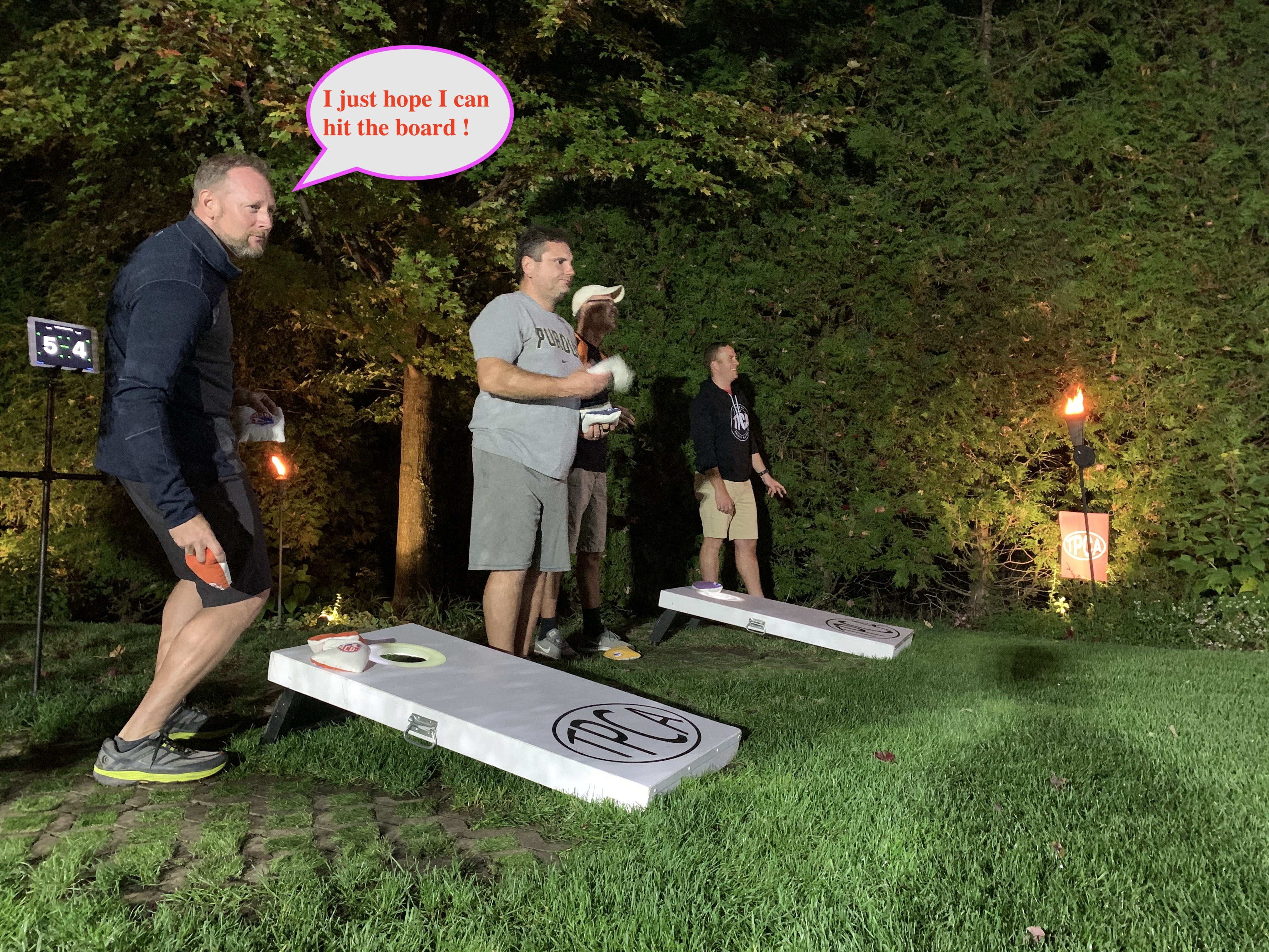 10/22/2020 After several cold days in late October we had a warm, 80 degree Thursday that was perfect for our annual Fall Toss Off Tournament of Champions. We had 8 ½ teams of the very best cornhole players in Kentucky in a wild double elimination blind draw tournament dueling it out for top honors. We all brought our A game and were eager to win but a big surprise was in store for us! The experienced players, with 12 plus years of playing cornhole under their belts, were completely upended by Andy Miller and Zach Hurt, two young upstarts that are barely out of their cribs. This may be the start of a new era! Is it time for the seniors to start throwing from the red tees? At the end of the evening after one too many buckets of Fireball everyone thought they were a winner. A big shout out to whomever refilled the Fireball bucket. We have too much fun.