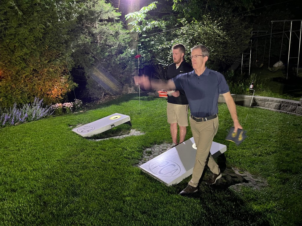 5/18/23 – We had a fun Spring Fling (like always) with 7 hot teams competing for the coveted prizes (two old bottles of bourbon from the back of Miller’s cabinet that he knew he would never drink). Dirc and Donovan pushed through some hard fought battles and came out the winners. After the redraw for the after tournament fun play, Wally and Eric got Shicked and will be getting the cans. Thanks to Hens for bringing mass quantities of beer for everyone. Nick we really liked your business casual attire. Stepping up the game!