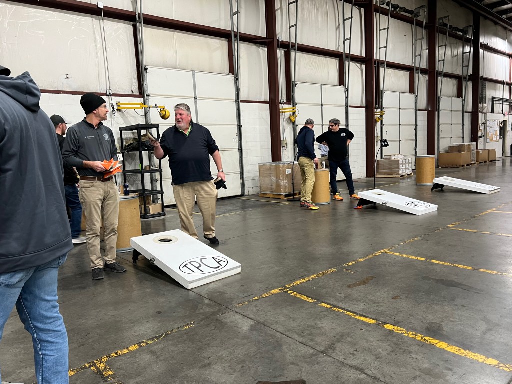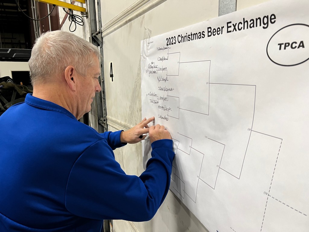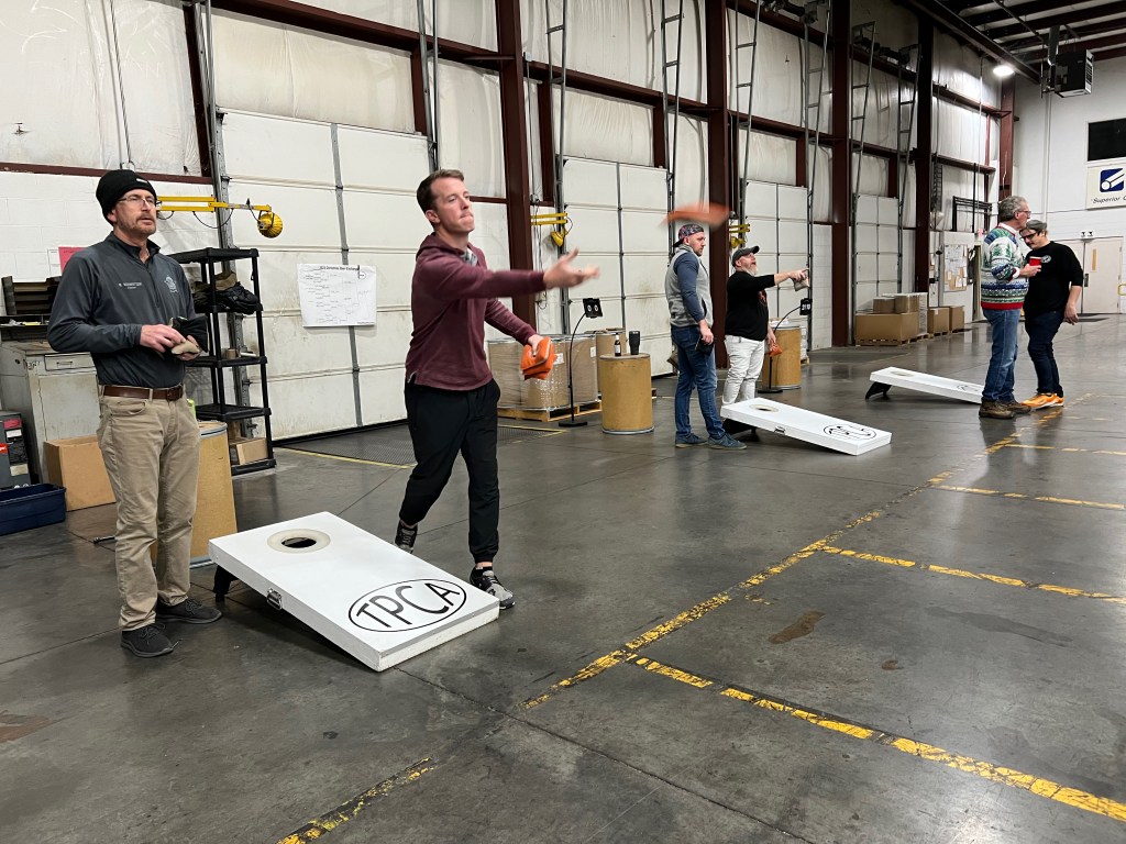 12/7/23 – We had the biggest crowd ever for our annual Christmas Beer Exchange and Cornhole Extravaganza at the JLC corn dome! Last year we had a smaller crowd due to Covid, but this year we had 10 teams! The evening was super fun with many hotly contested, close matches. Eric played like he was possessed. Bryan and his dad teamed up as father and son which was nice for everyone else. Jeff won the ugly sweater contest and the ugly….