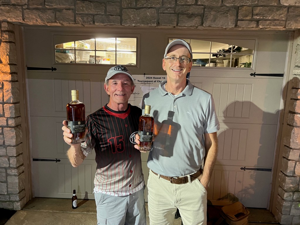 Dirc and Wally were the projected favorites but lost the first game and had to work their way back from the losers bracket. Ultimately, Mark and George defeated them for the prizes—some mighty fine Bardstown Bourbon!