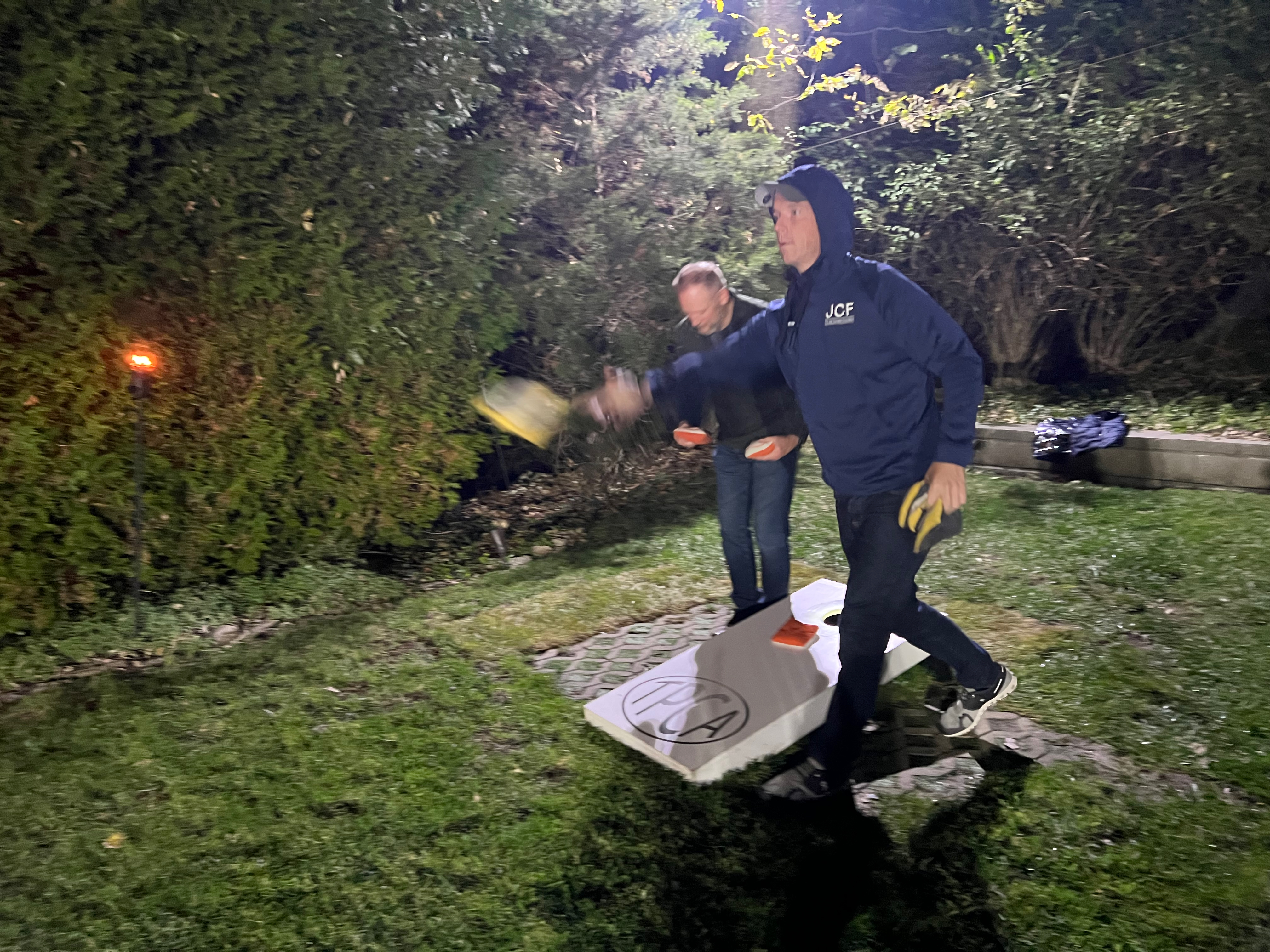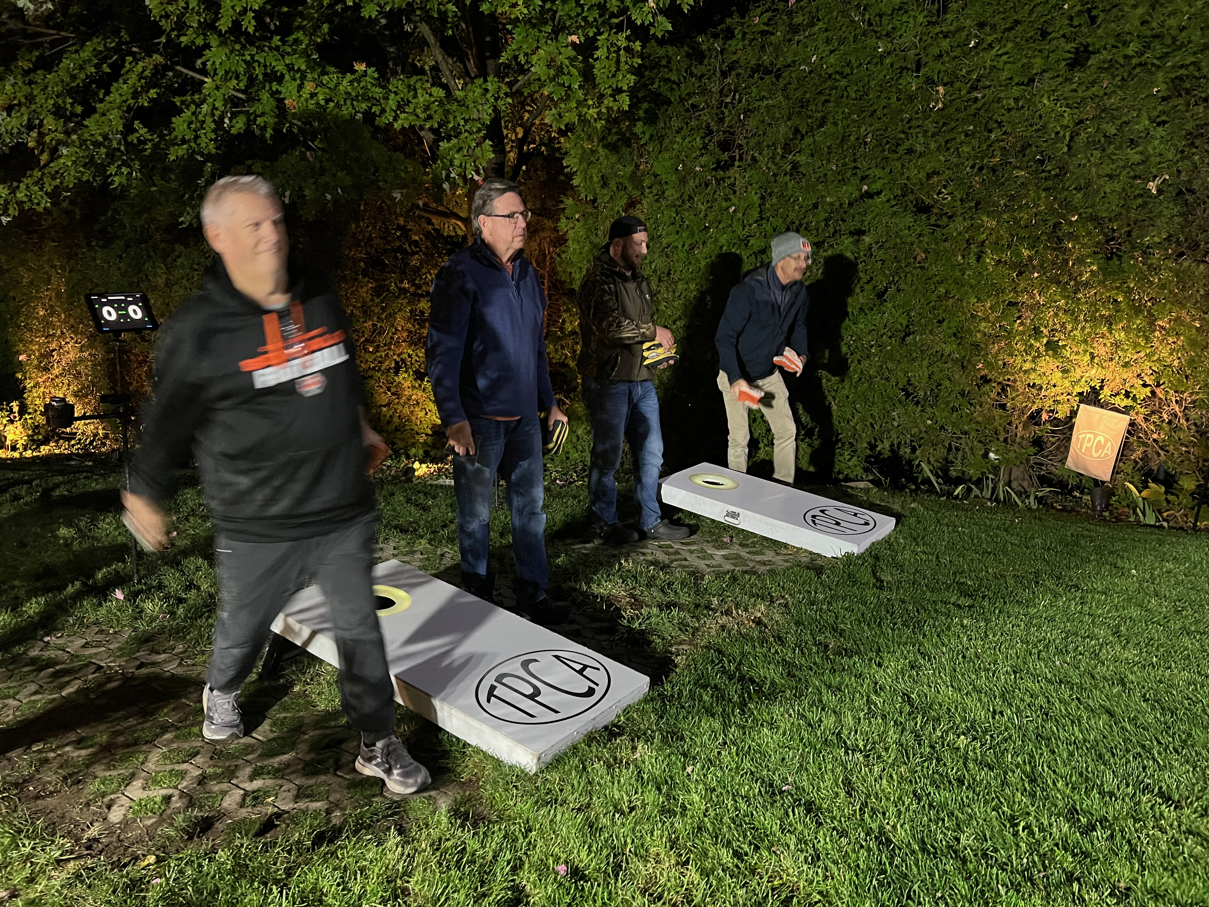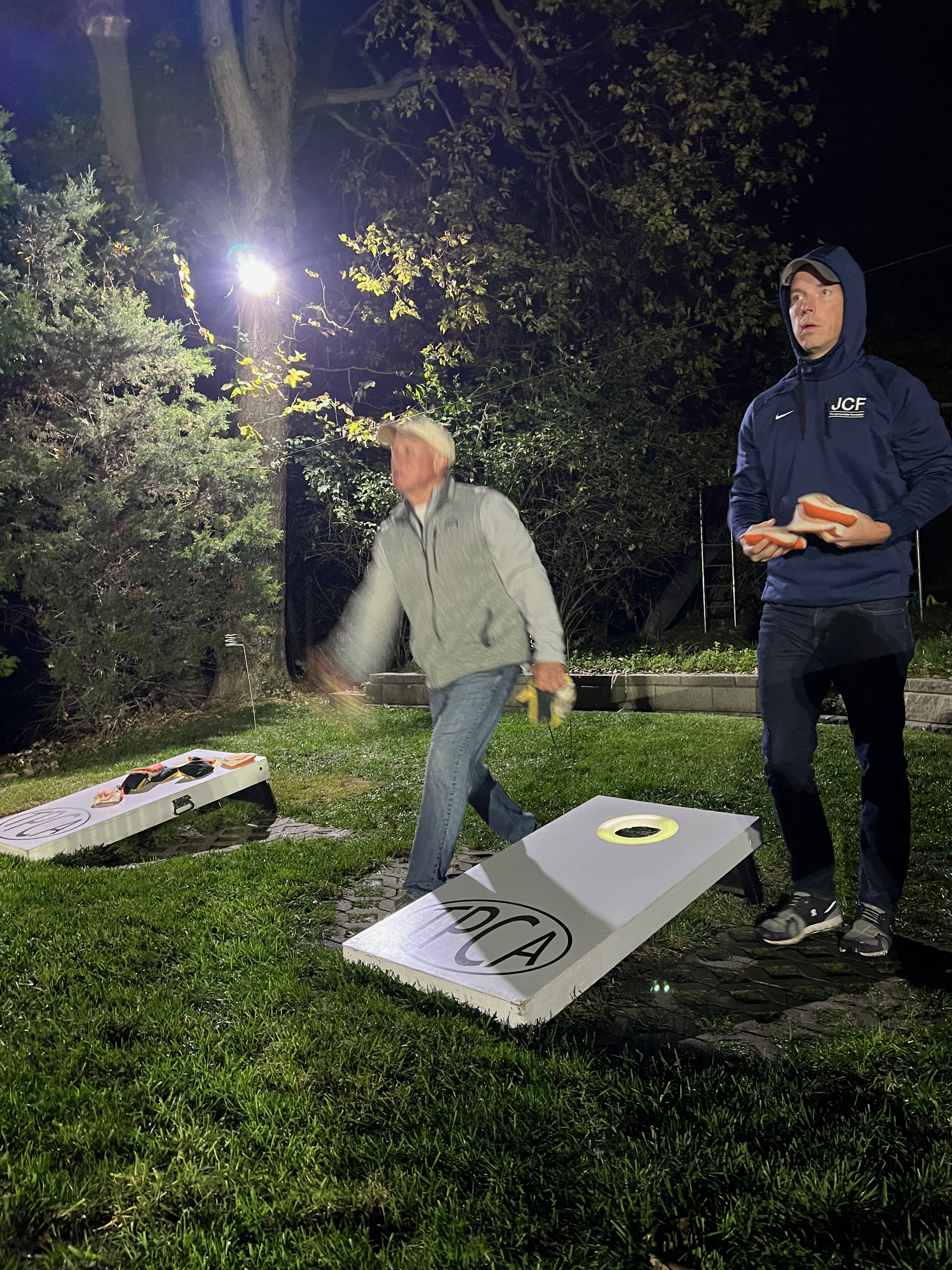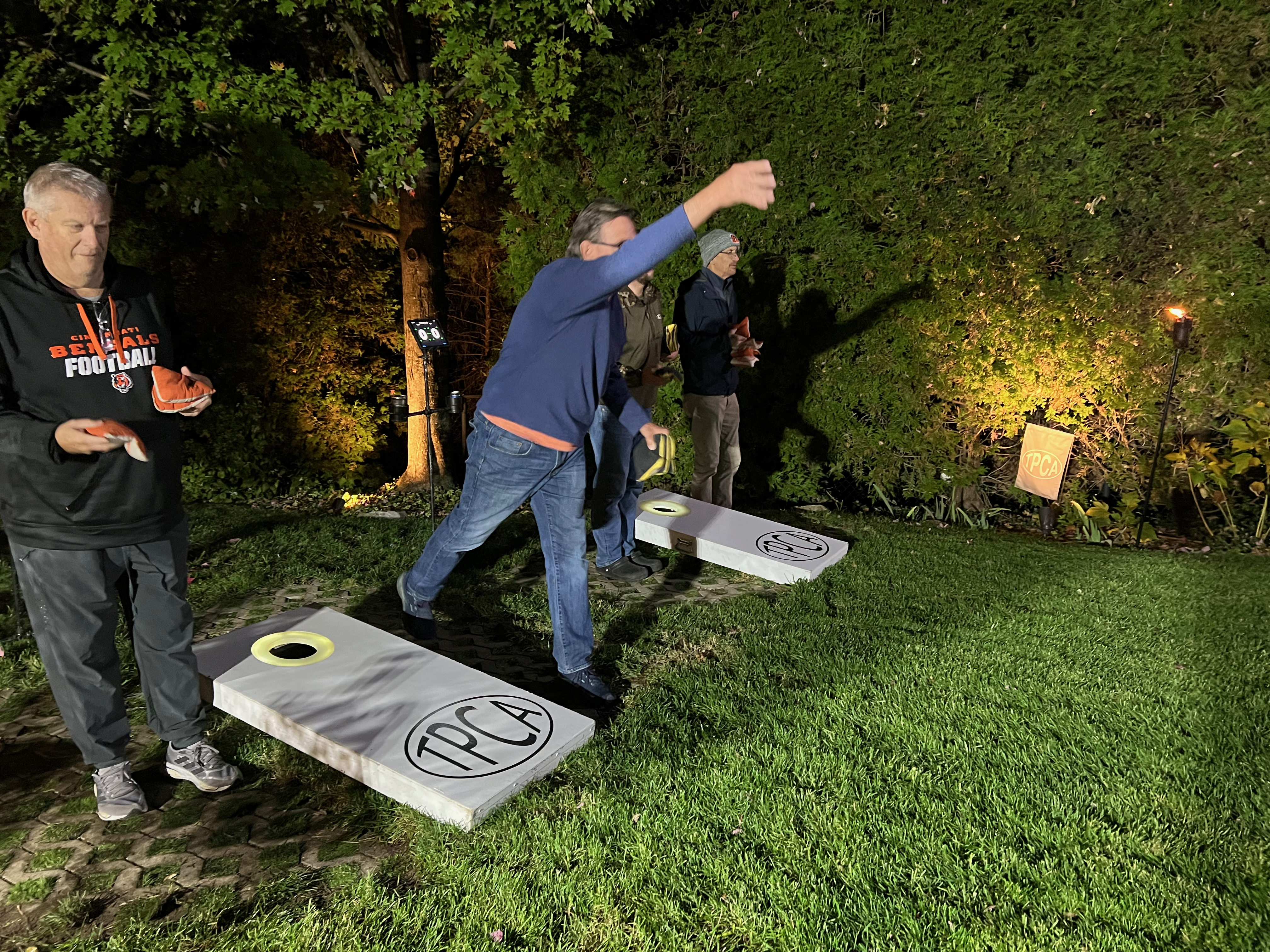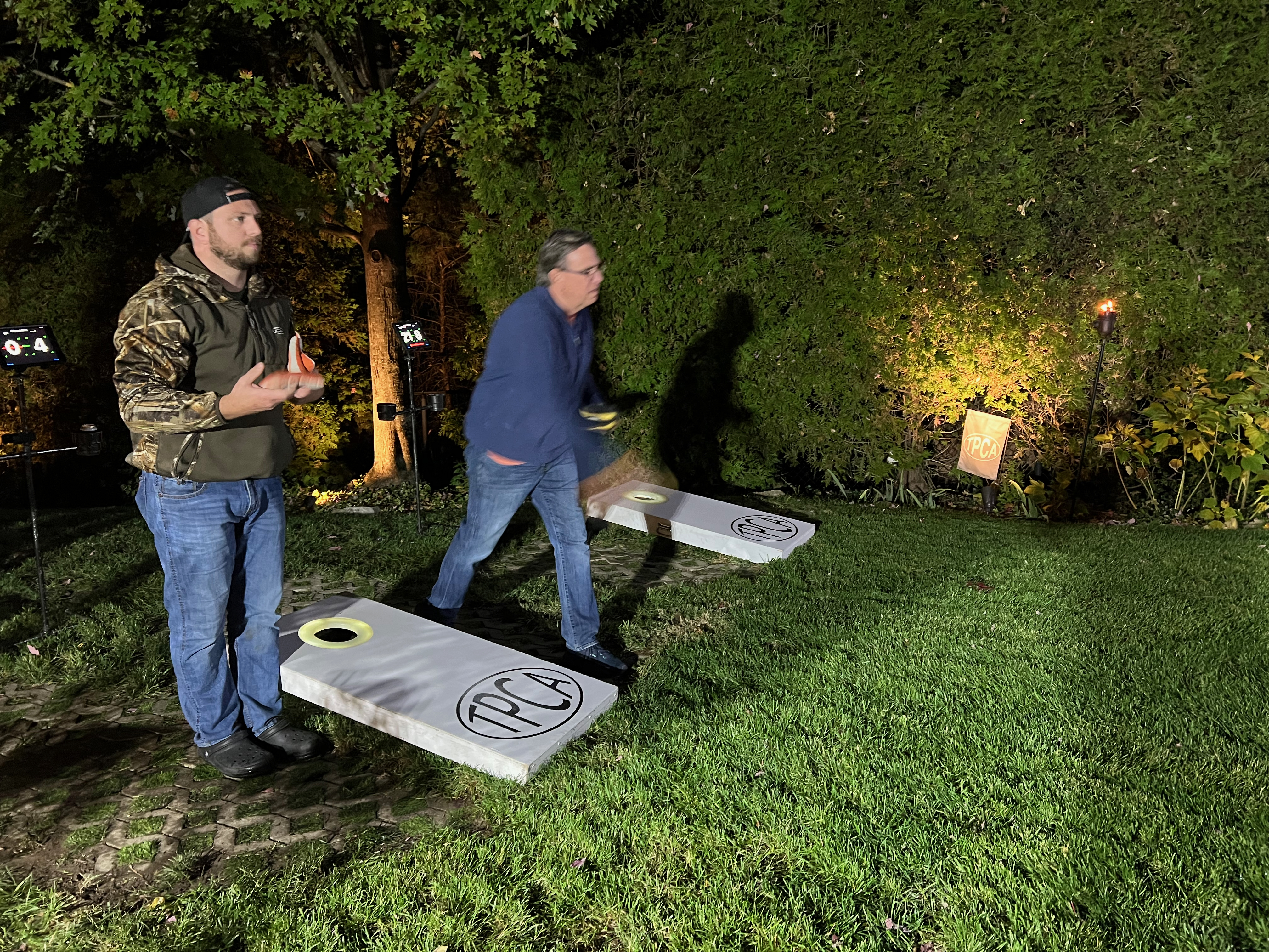 10/24/24 – What an end to a long, dry summer! Last night we had our 16th annual Fall Toss Off tournament of champions. The weather was perfect for some fall cornhole. We had six very competitive teams that were pretty well balanced. Every team had a shot to win the tournament. Even those that don’t play regularly, but have the audacity to show up for tournaments thought they could win. The Donovan/George team prevaled by not losing a single game. Looks like George has won the last three tournaments. Three peat! Is a four peat possible?