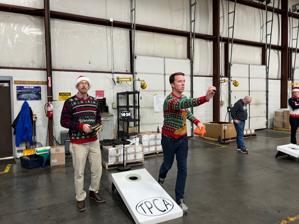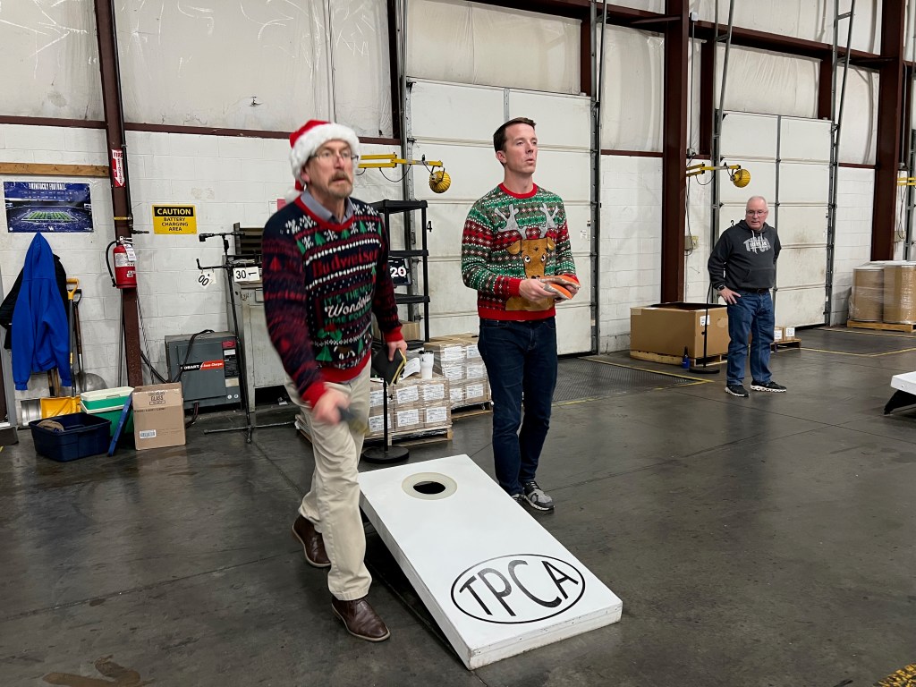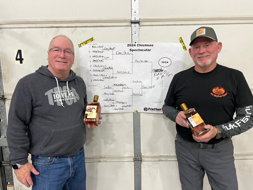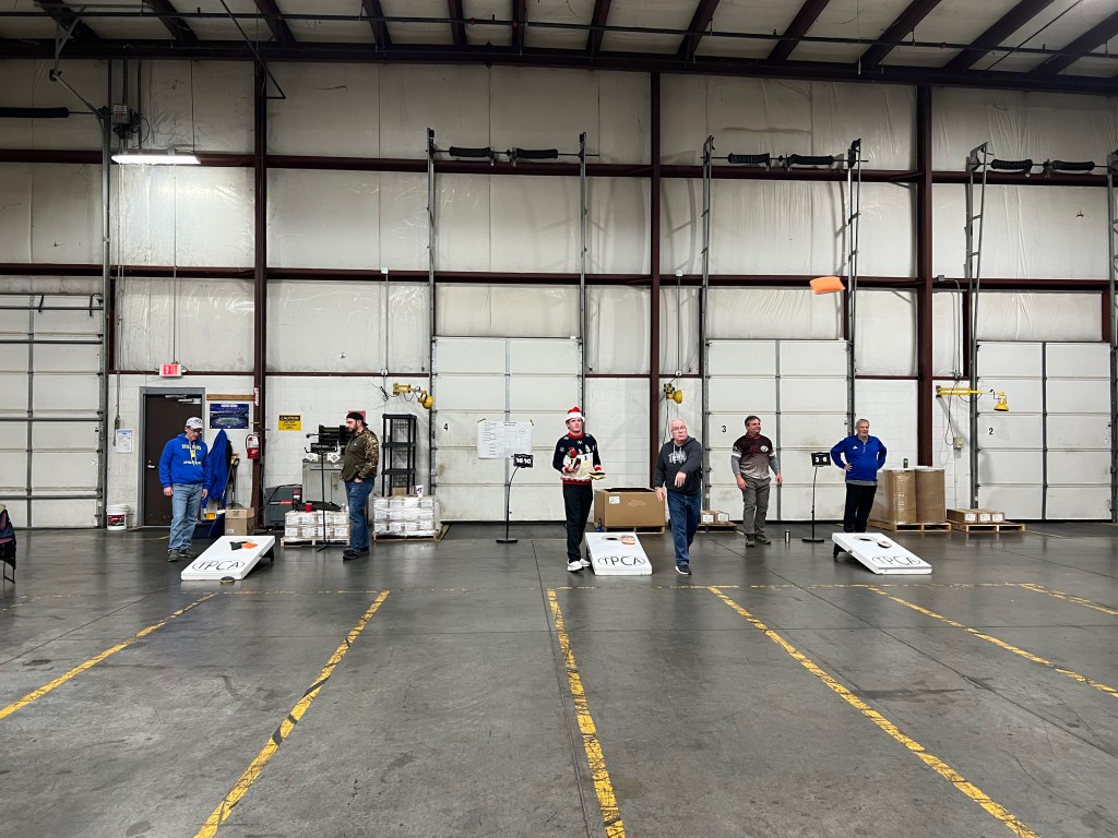12/19/24 – Once again we had our annual Christmas Spectacular and Beer Exchange at the JLC Corndome. We had 19 people show up and 16 of them competed in the tournament. The tournament was won by Dan Orem and Steve Miller. Dan and Steve beat George and Muff in the first round. But George and Muff easily defeated all the teams in the losers bracket and came back to challenge Dan and Steve. George and Muff won the first game but Dan and Steve came back hard and won the last game and the tournament. Notice I didn’t say anything bad about Muff. And BTW I was playing with debilitating hiccups from drinking a cranberry sparkling at Jeff Ruby’s