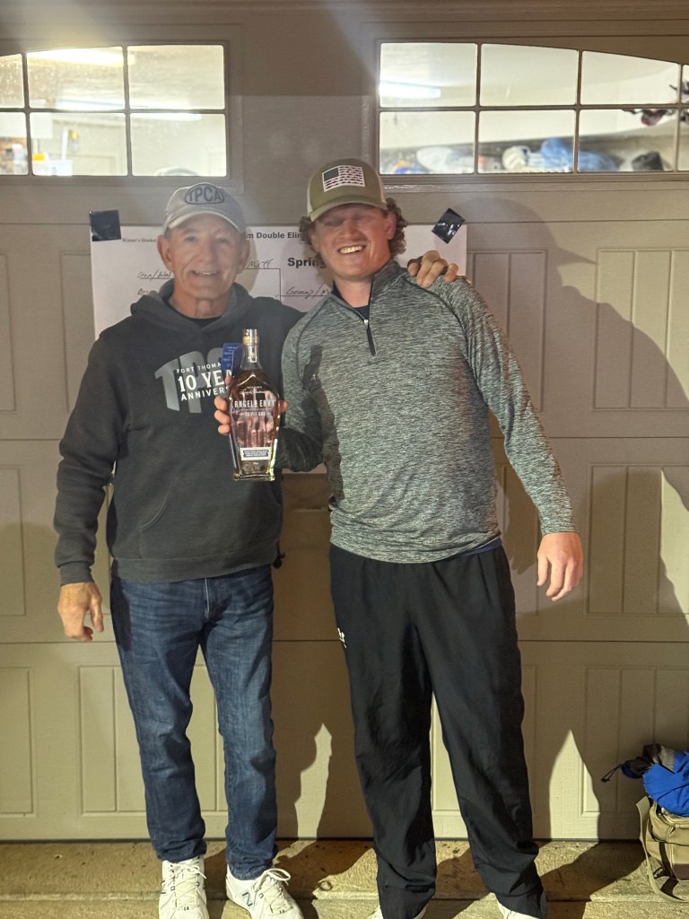 Unfortunately Donovan claimed that due to new phone issues he didn’t know he had to bring the prize, so there was only 1 bottle for the winners to share. He might be morphing into a Miller. Fortunately, Susan bought Mark a really nice bottle of Angels Envy so that made it better. Susan, thanks for taking care of Mark!