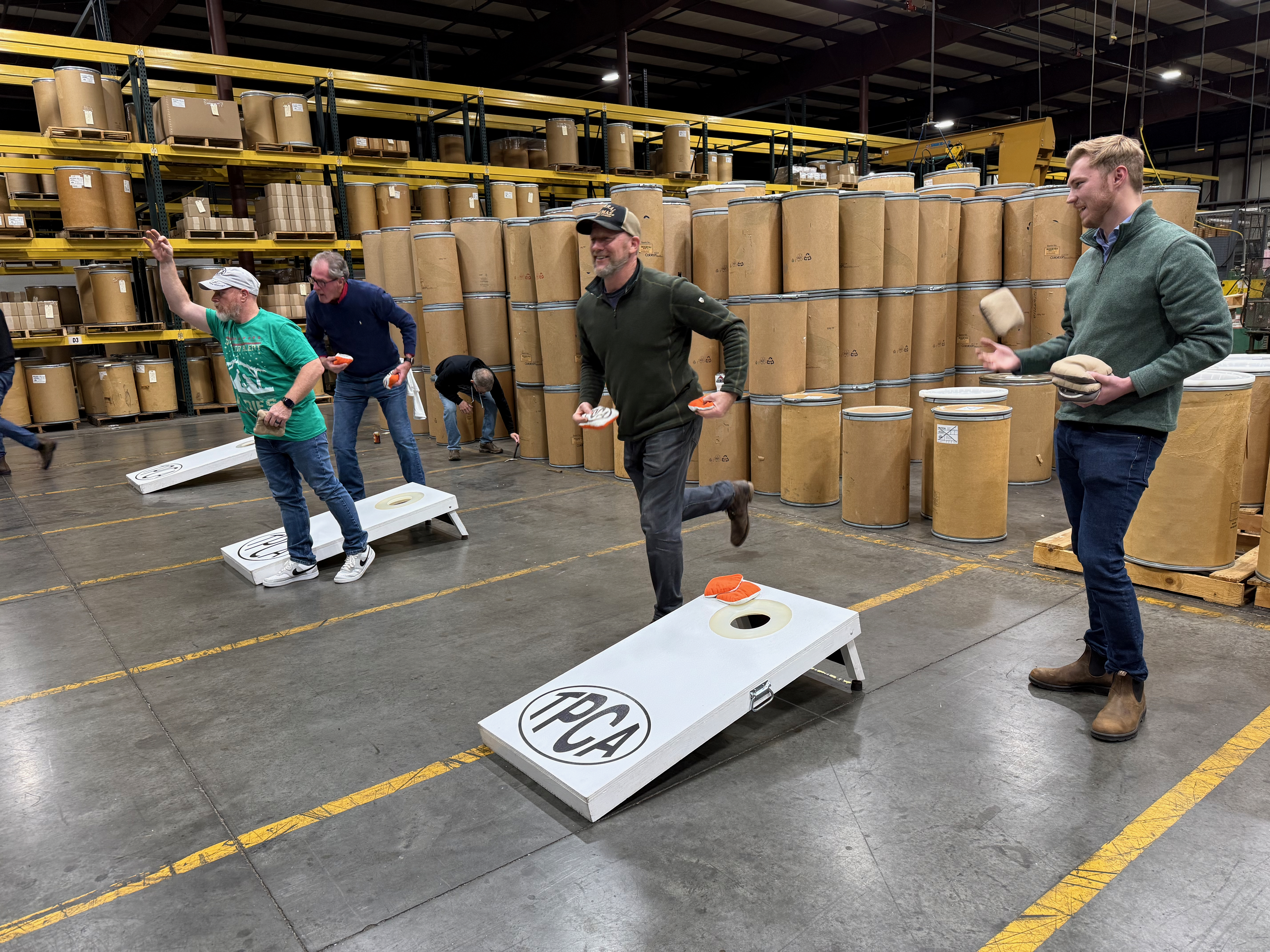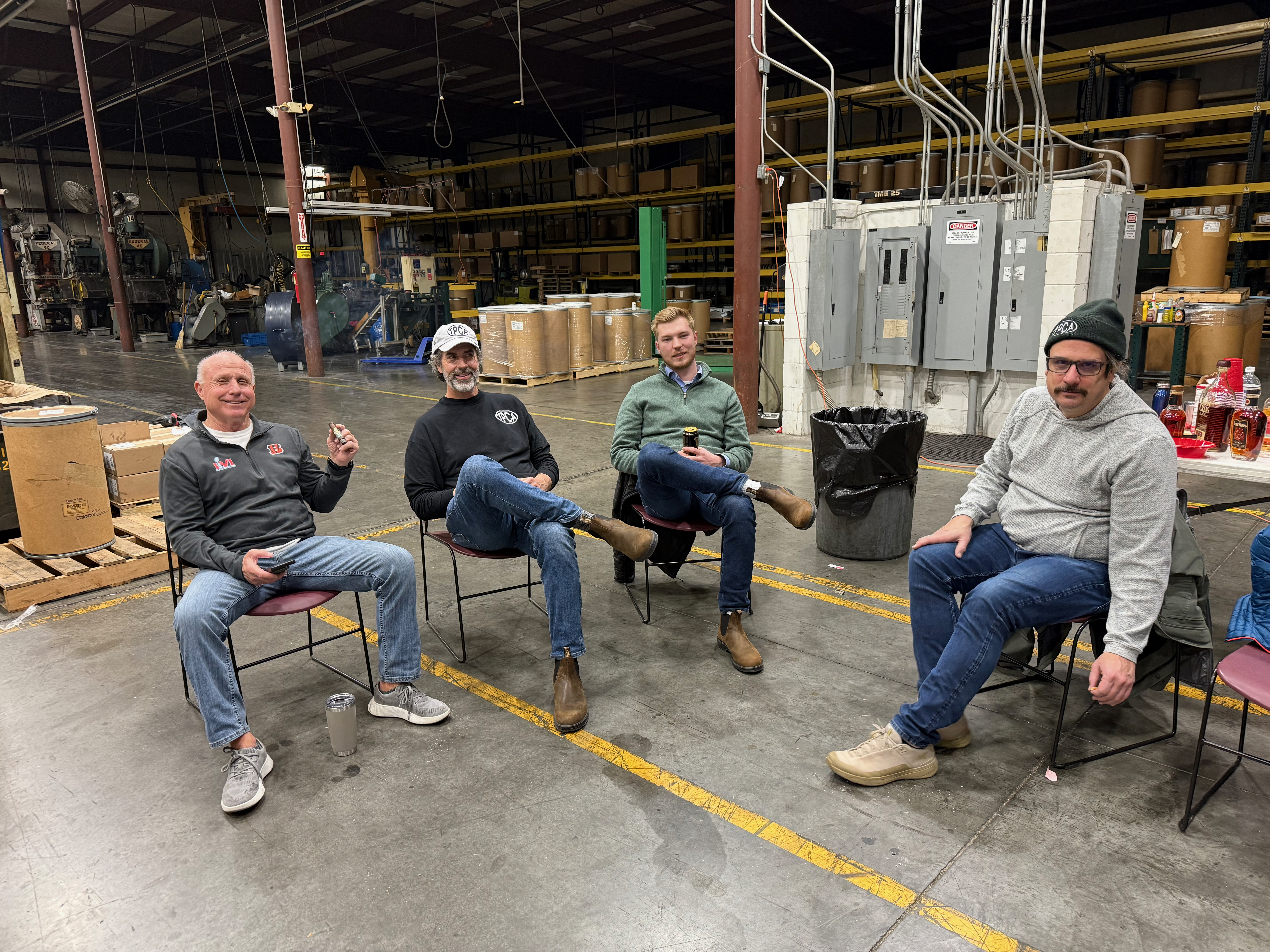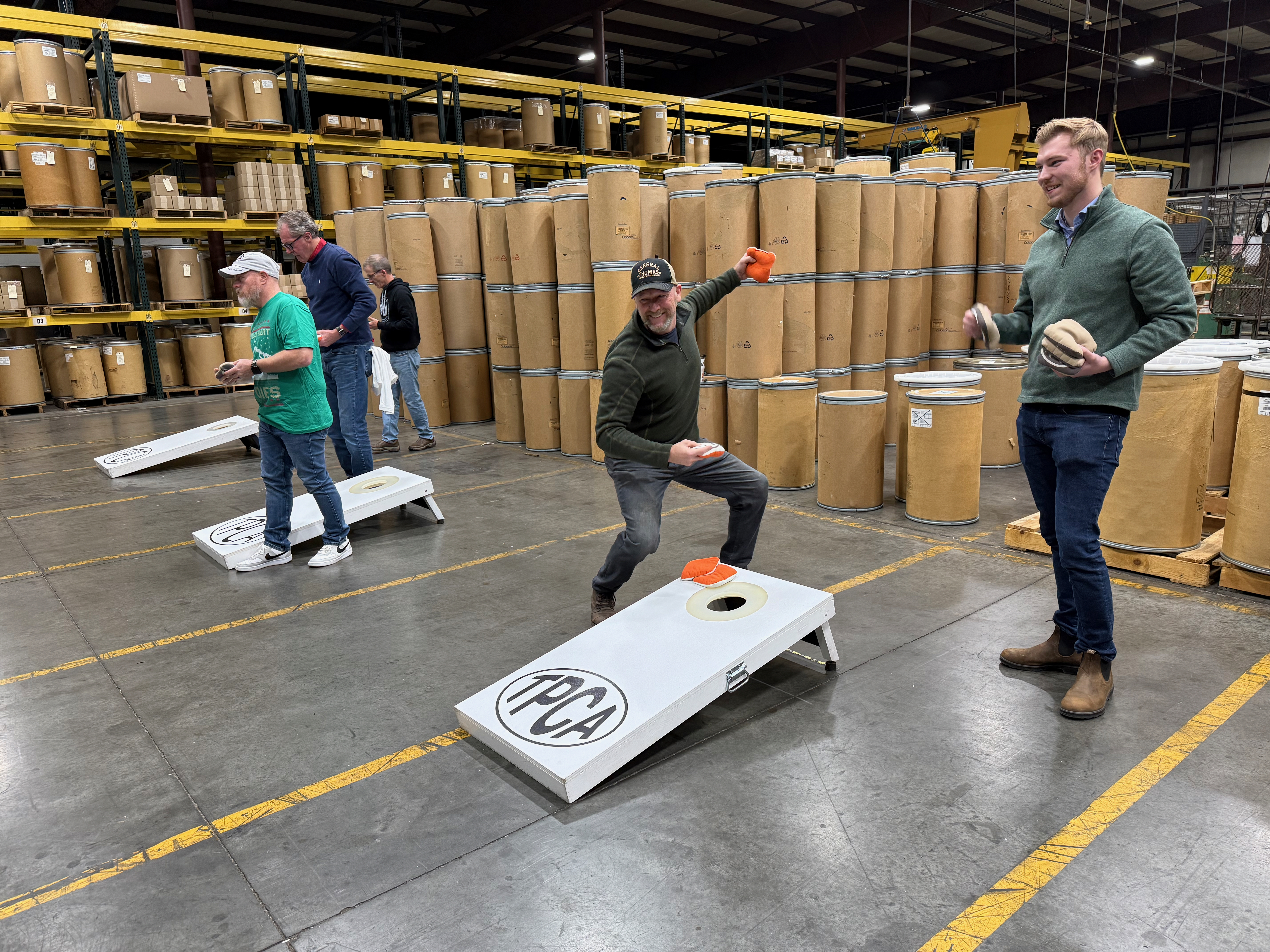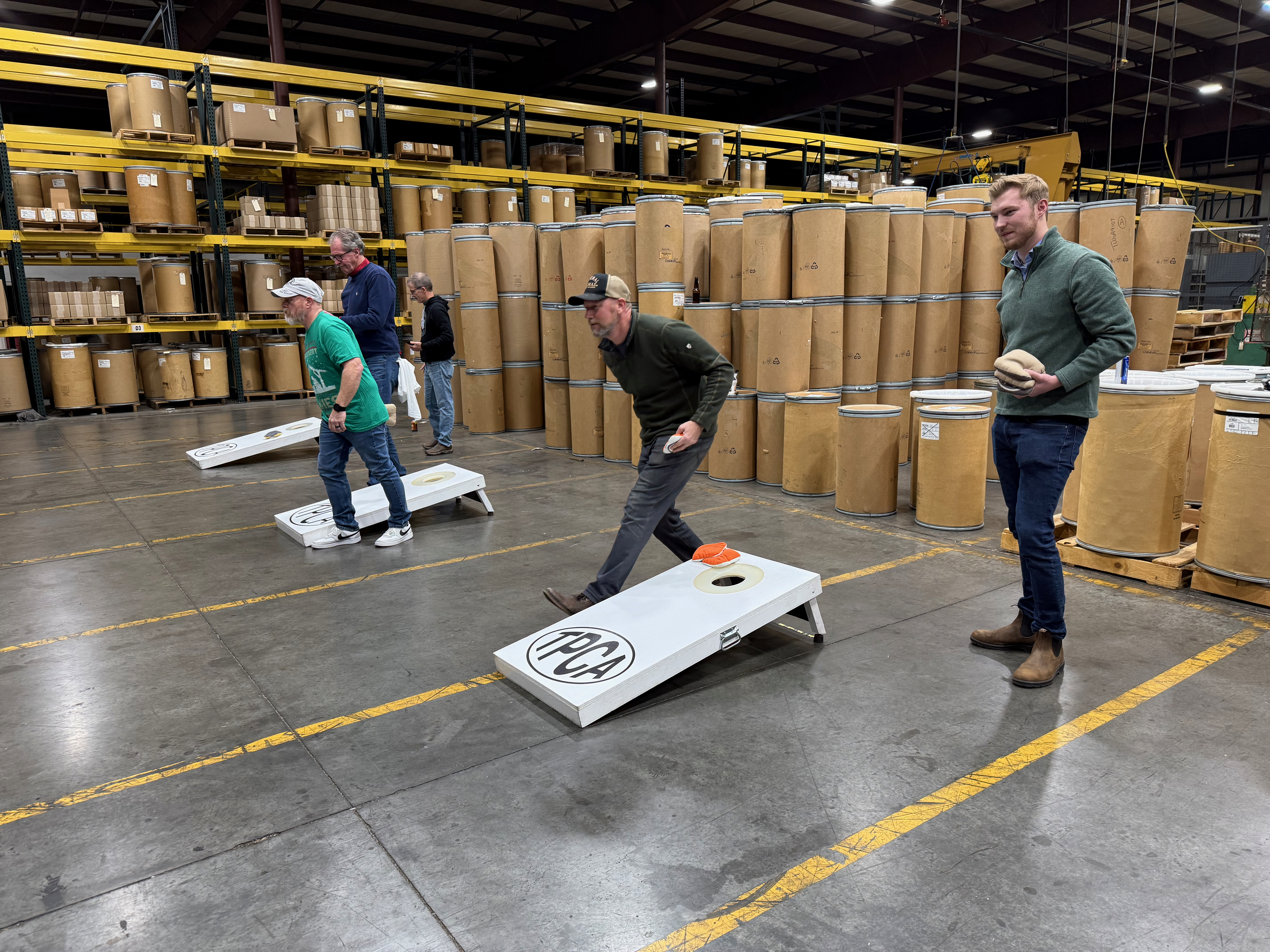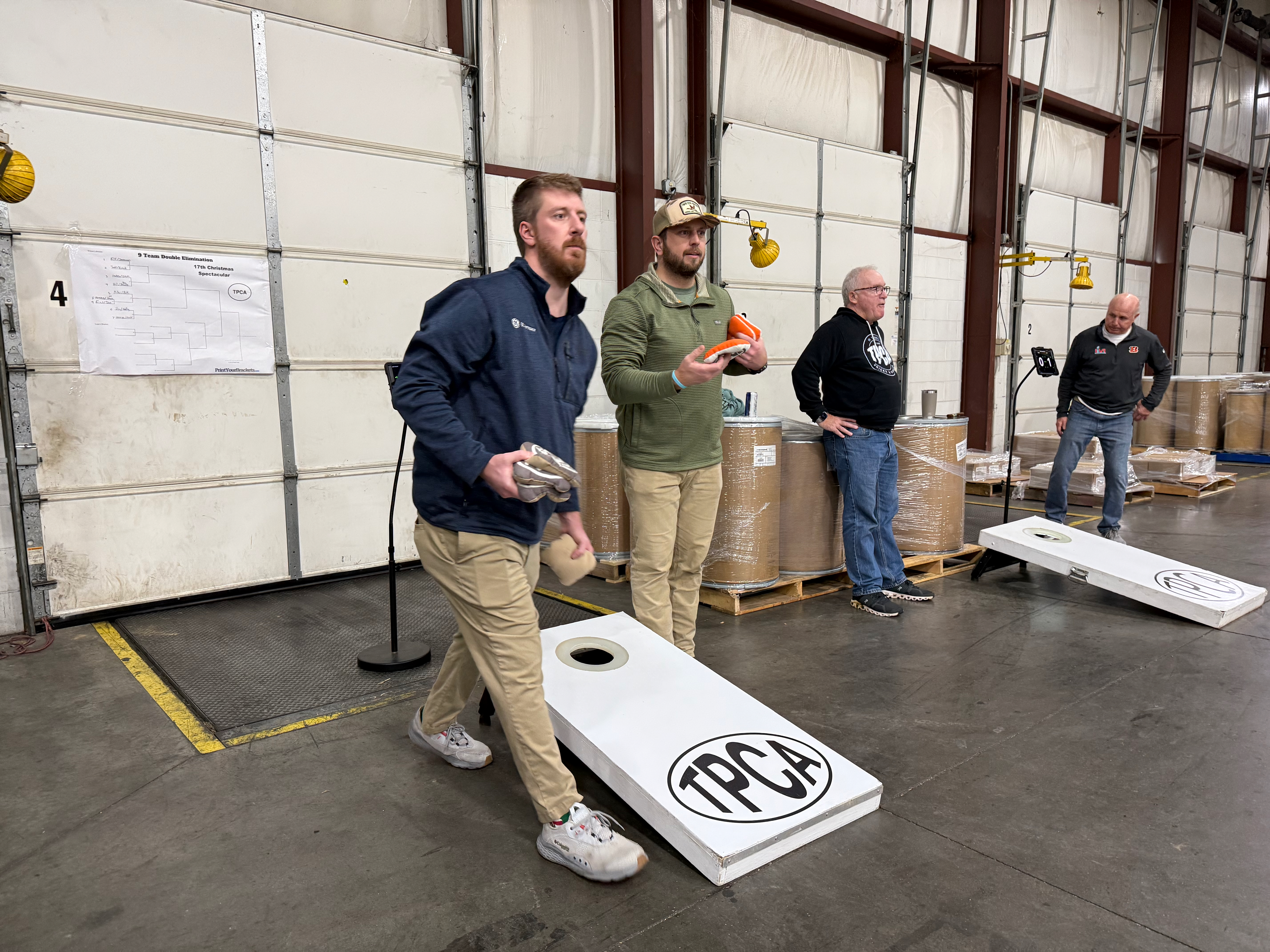 12/18/2025 – We had our annual Christmas Beer Exchange and Cornhole Spectacular tournament at John’s building in Wilder. We had lots of appetizers and beer! There were nine teams in our usual blind draw, double-elimination tournament. The dream team of Muff and George won, but it wasn’t easy; a couple of the games were way too close. Muff’s new haircut must have helped him play so well. It was nice to see the occasional players there. The prizes were General Thomas Bourbon with a special Christmas message. Fun times for all! Merry Christmas.