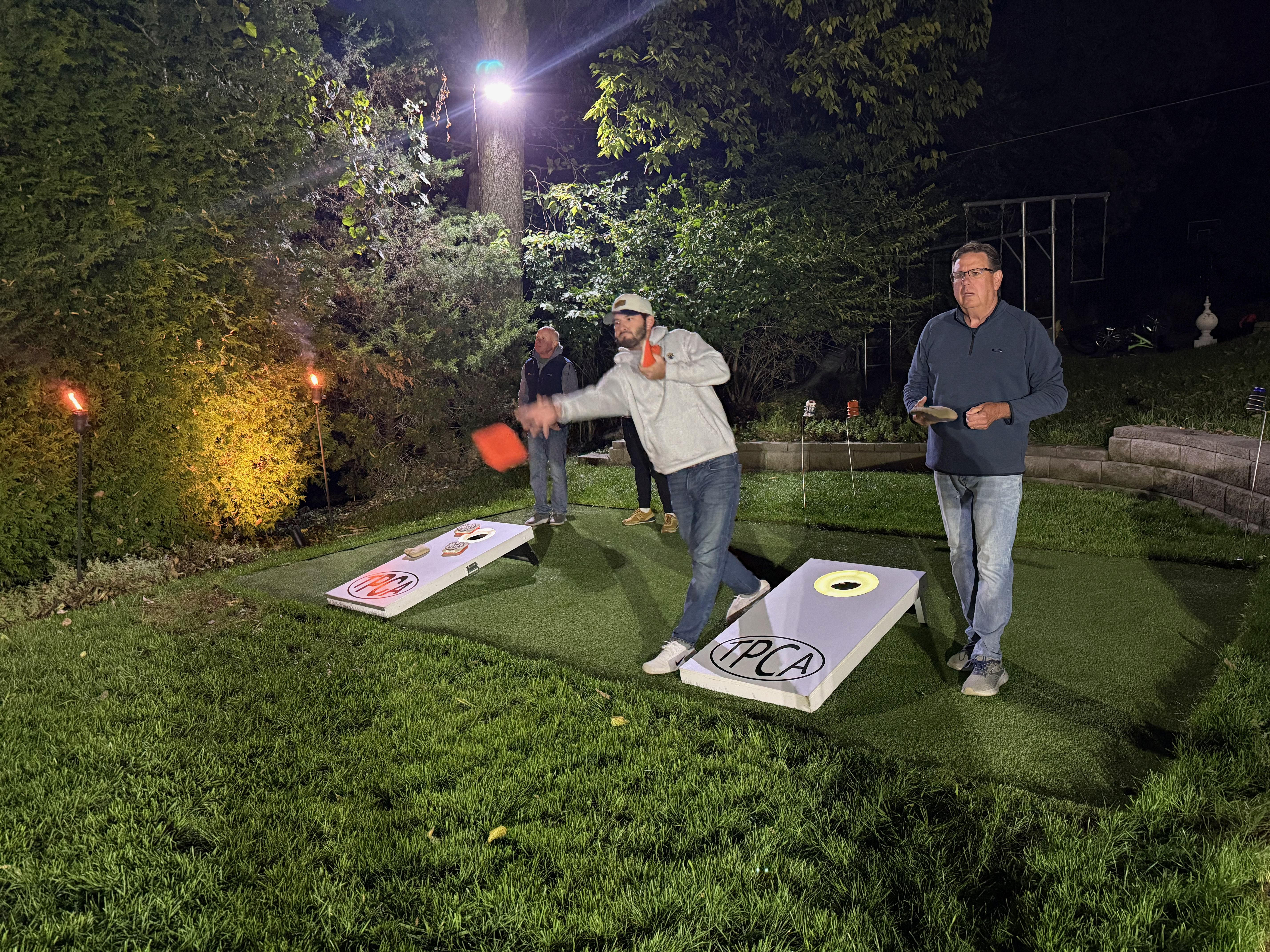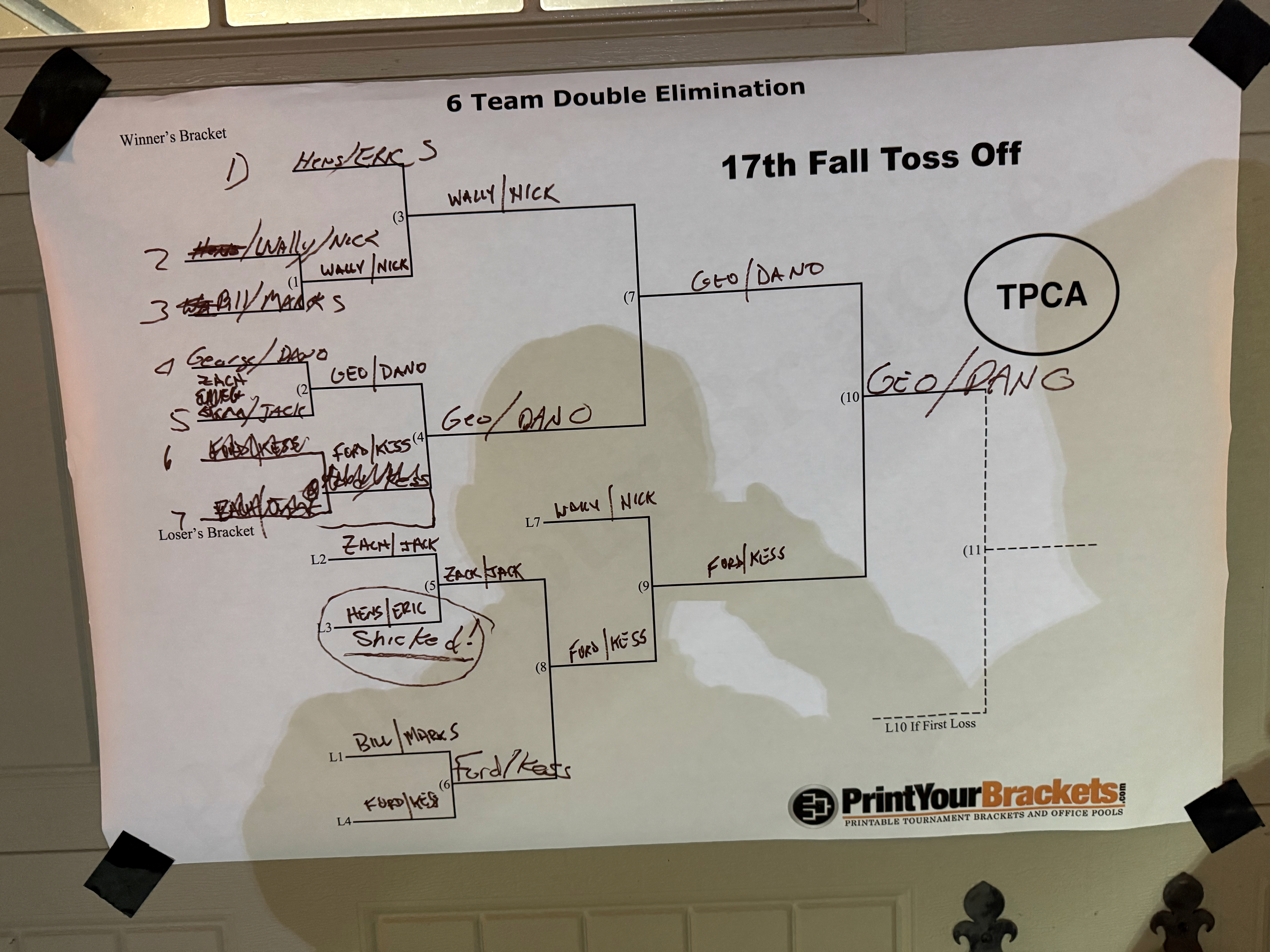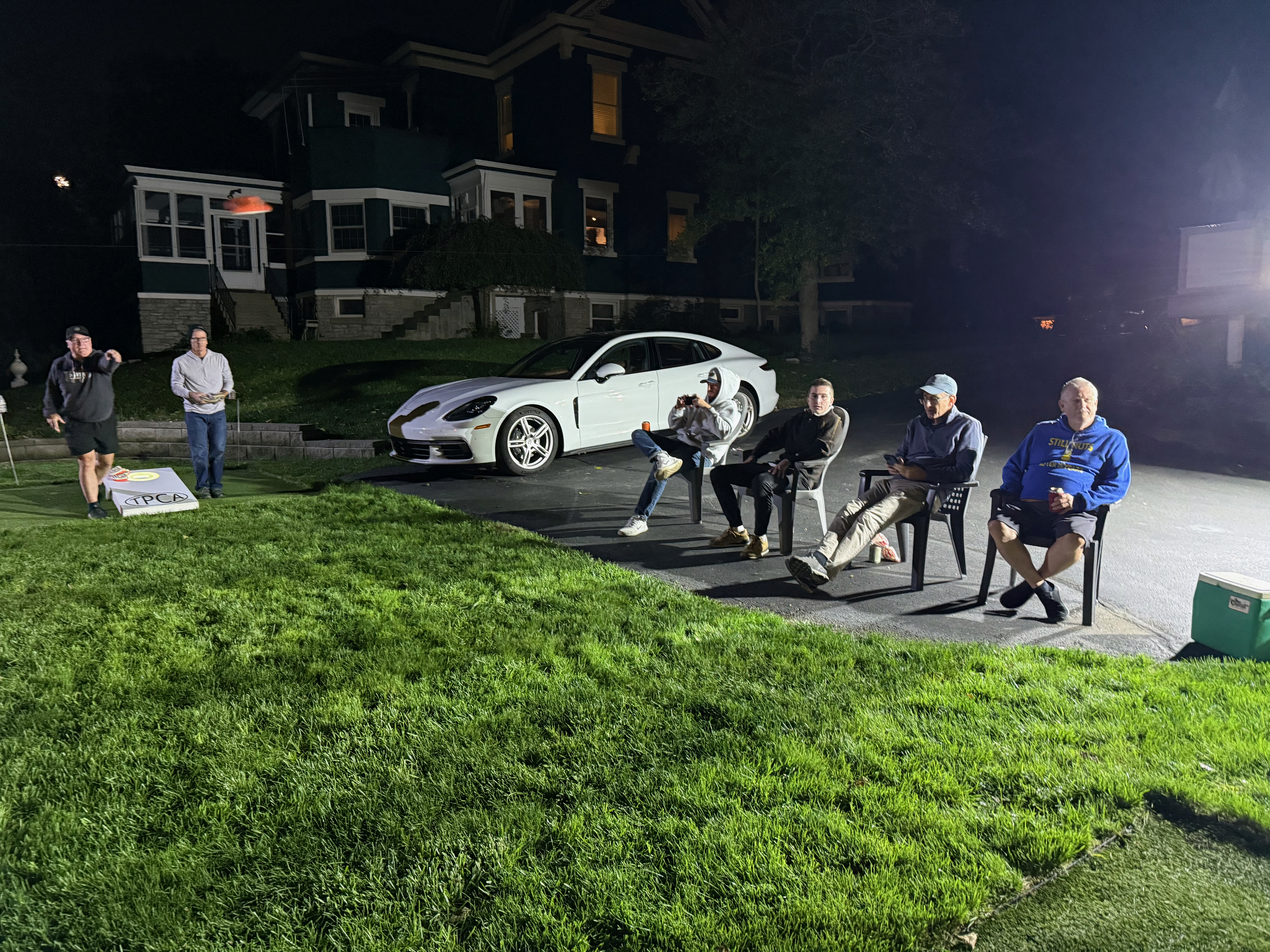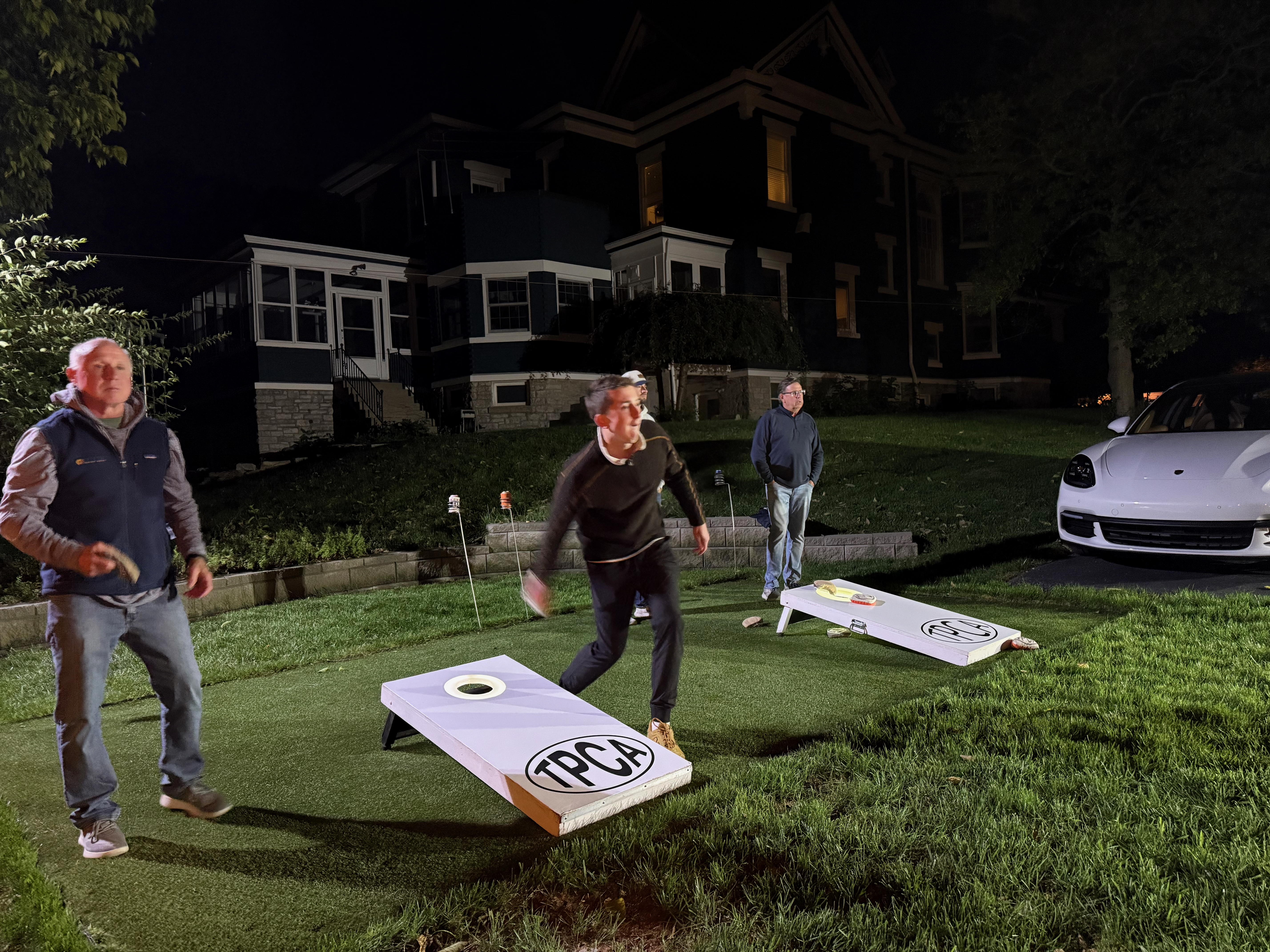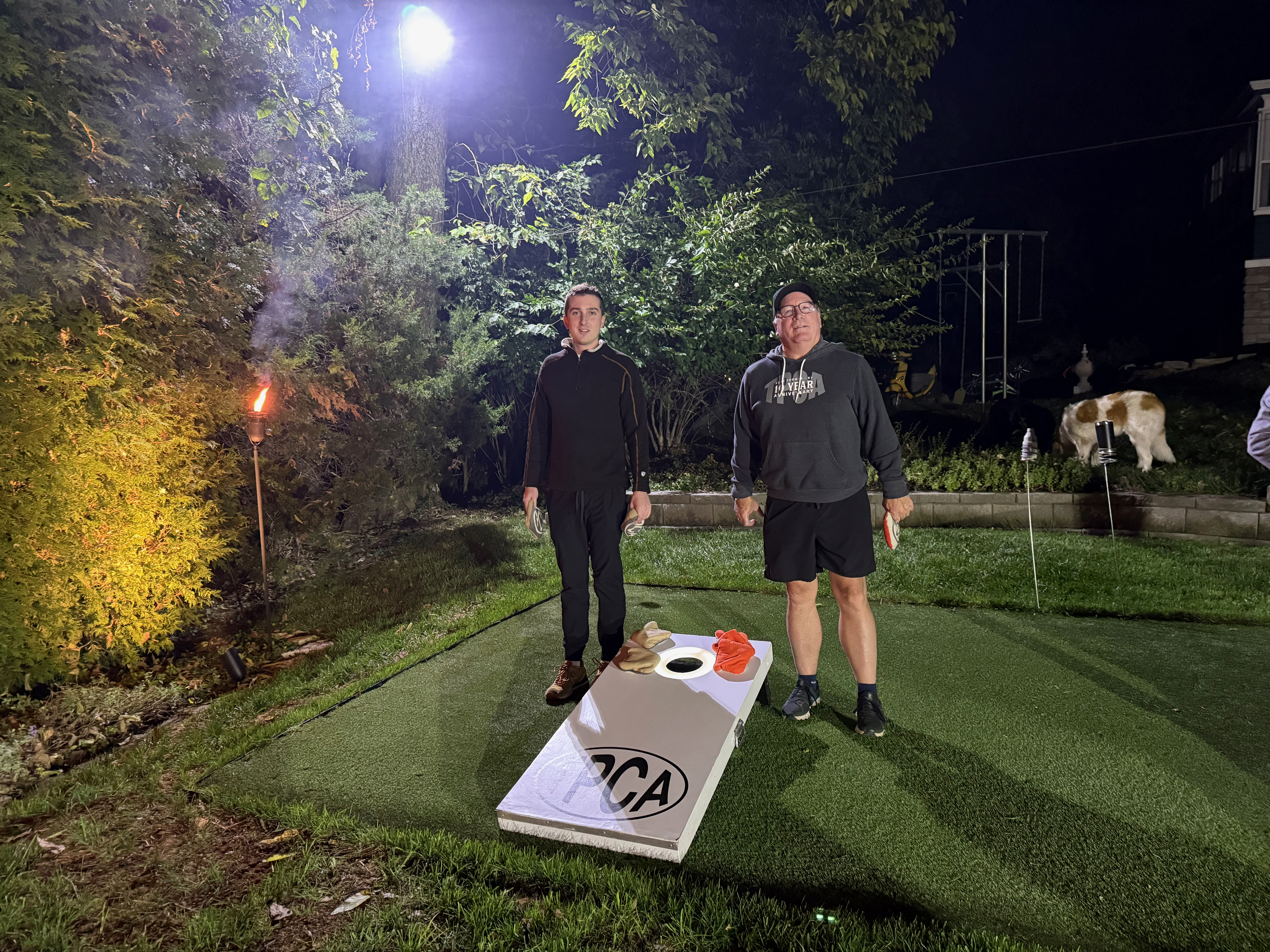 12/18/2025 – We had our annual Christmas Beer Exchange and Cornhole Spectacular tournament at John’s building in Wilder. We had lots of appetizers and beer! There were nine teams in our usual blind draw, double-elimination tournament. The dream team of Muff and George won, but it wasn’t easy; a couple of the games were way too close. Muff’s new haircut must have helped him play so well. It was nice to see the occasional players there. The prizes were General Thomas Bourbon with a special Christmas message. Fun times for all! Merry Christmas.