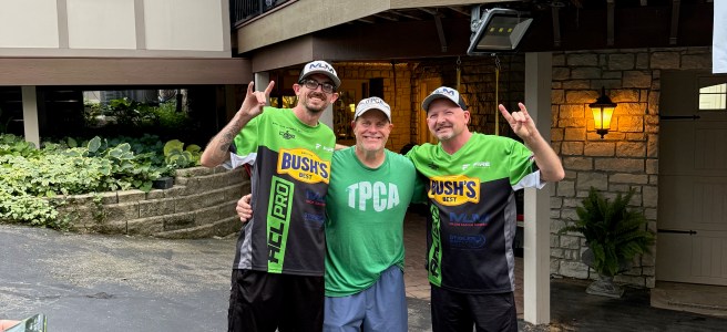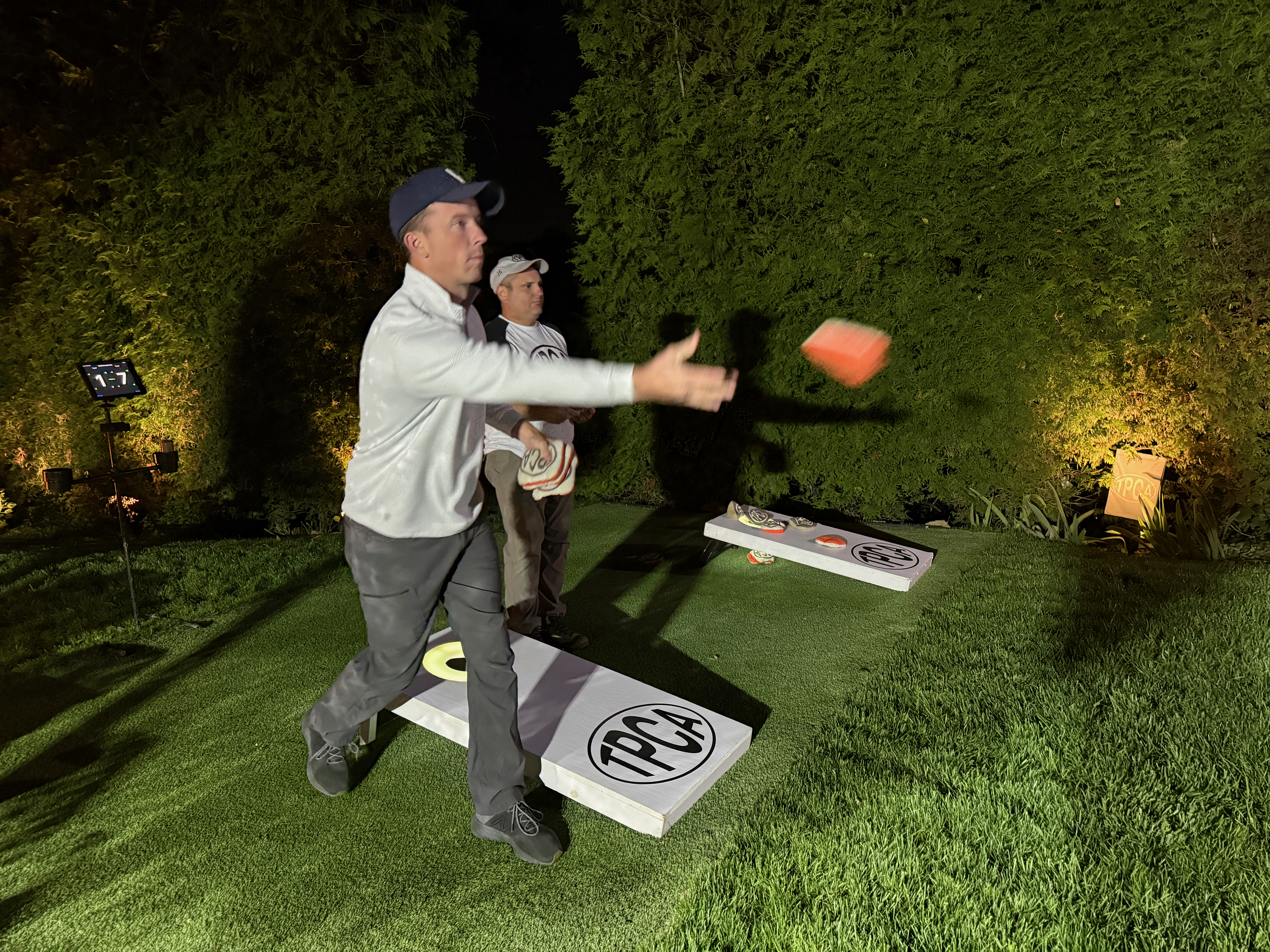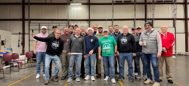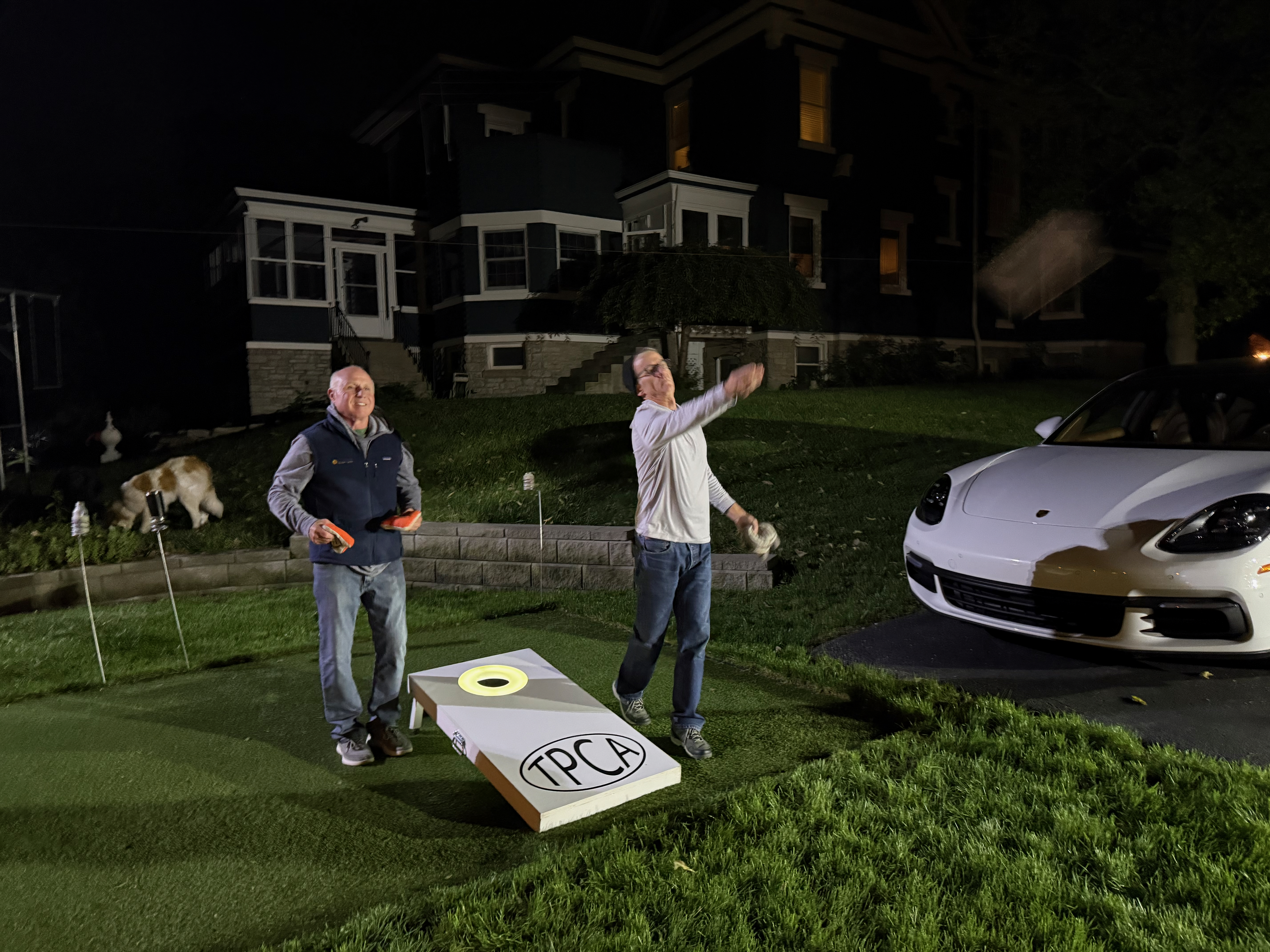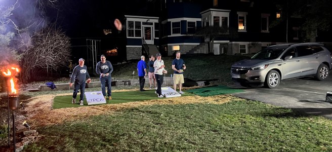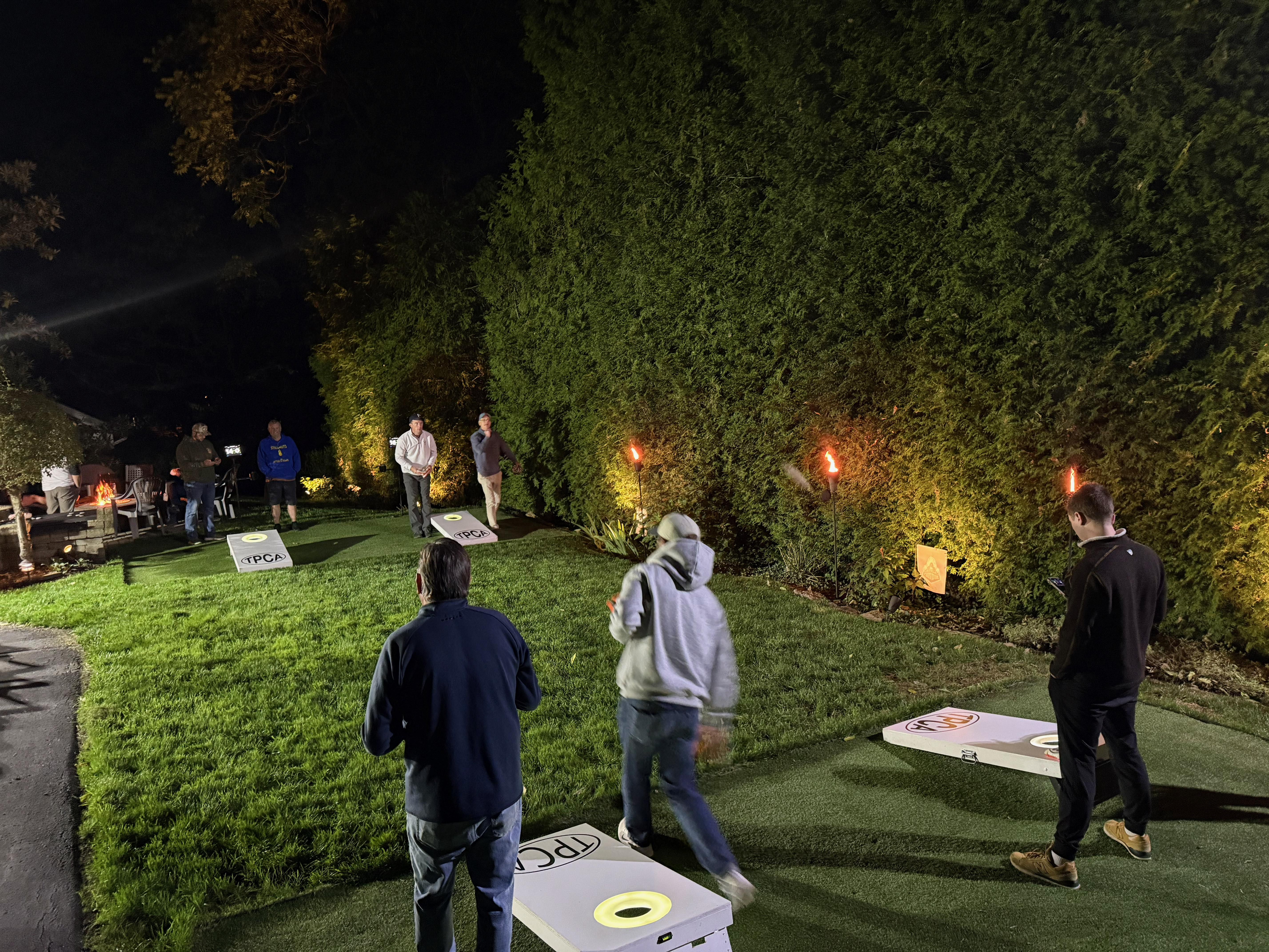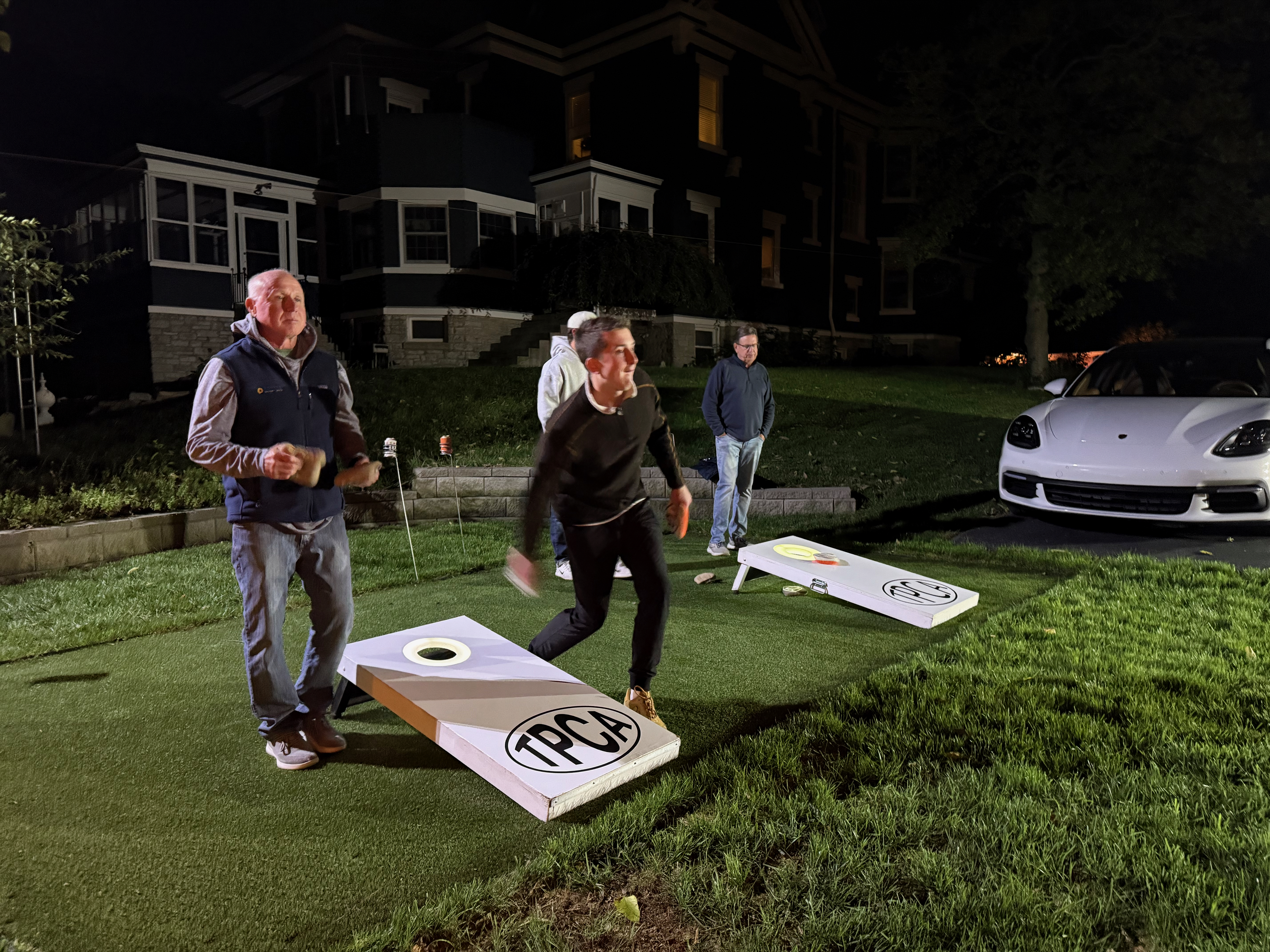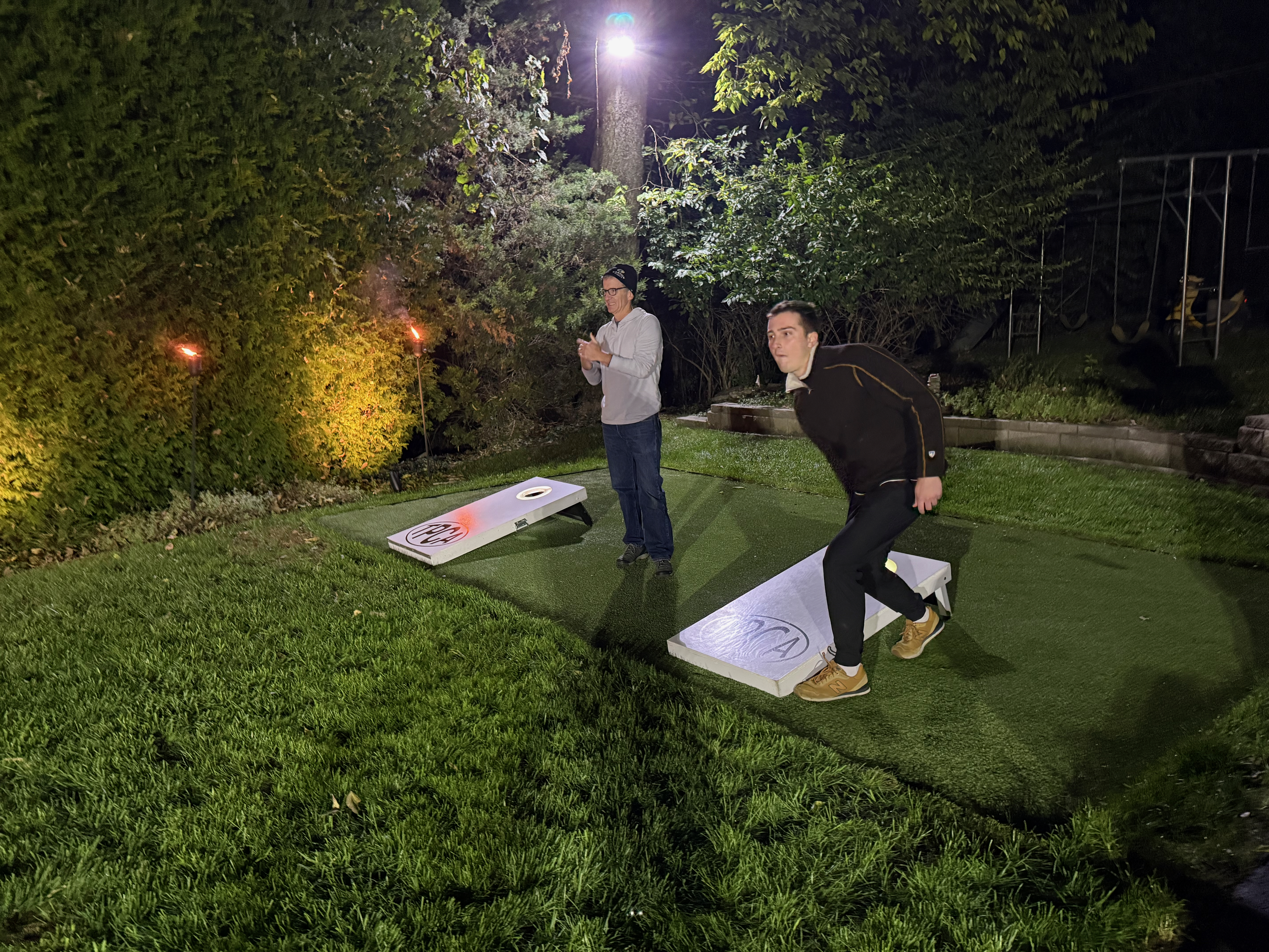 12/18/2025 – We had our annual Christmas Beer Exchange and Cornhole Spectacular tournament at John’s building in Wilder. We had lots of appetizers and beer! There were nine teams in our usual blind draw, double-elimination tournament. The dream team of Muff and George won, but it wasn’t easy; a couple of the games were way too close. Muff’s new haircut must have helped him play so well. It was nice to see the occasional players there. The prizes were General Thomas Bourbon with a special Christmas message. Fun times for all! Merry Christmas.