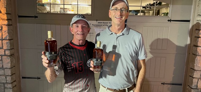 Dirc and Wally were the projected favorites but lost the first game and had to work their way back from the losers bracket. Ultimately, Mark and George defeated them for the prizes—some mighty fine Bardstown Bourbon!