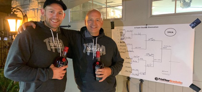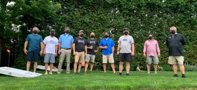 6/17/21 – Perfect summer evening with a very low cicada count. We celebrated our 13 year anniversary with a beer exchange and tournament. We had 6 teams in our standard blind draw, double elimination tournament. The big winners were Bill Keefer and Andy Miller. Congratulations! Andy is a two in a row winner. He just draws the best partners. Now that we are at 13 count for shots is that less likely than 12 ? Is there a statistician in the house ? Also congratulations to Bryan for winning the Highlander. Too bad about your trophy but you earned it for missing cornhole.